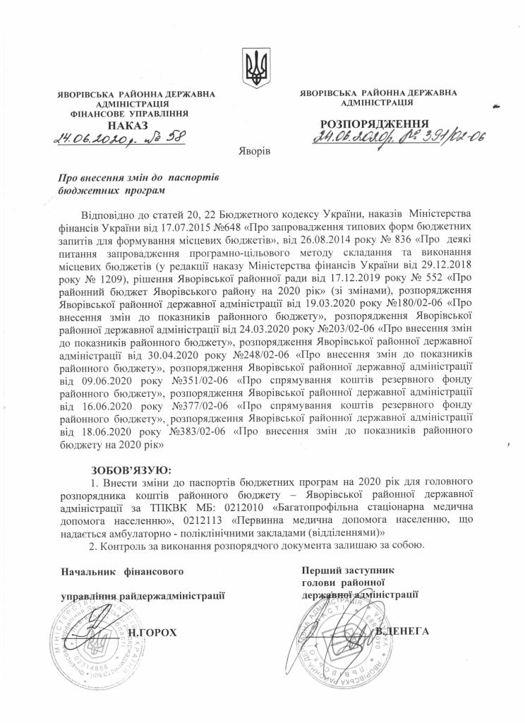 391/02-06 2020-06-24 Про внесення змін до паспортів бюджетних програм