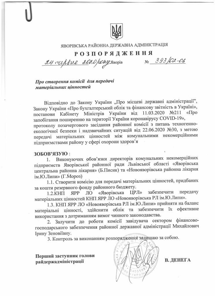 393/02-06 2020-06-24 Про створення комісії для передачі матеріальних цінностей