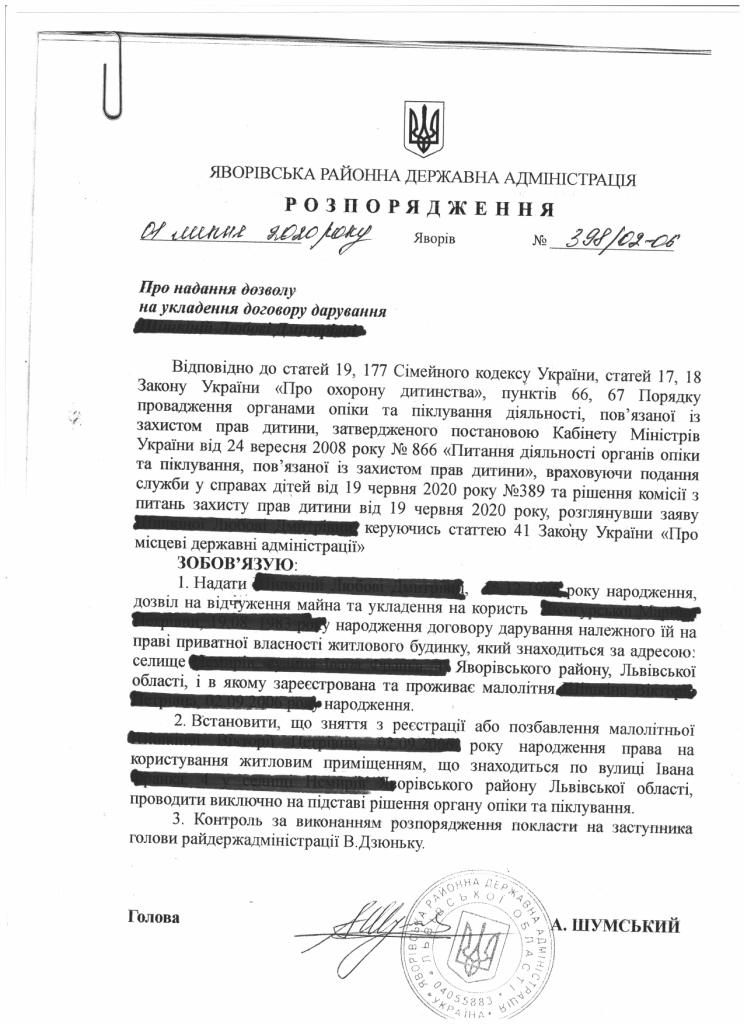 398/02-06 2020-07-01 Про надання дозволу на укладення договору дарування