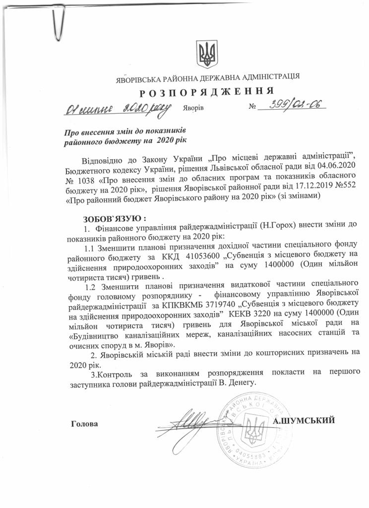 399/02-06 2020-07-01 Про внесення змін до показників районного бюджету на 2020 рік