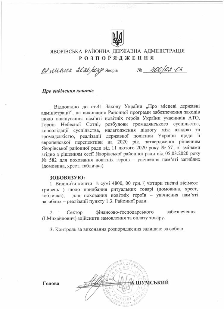 400/02-06 2020-07-01 Про виділення коштів