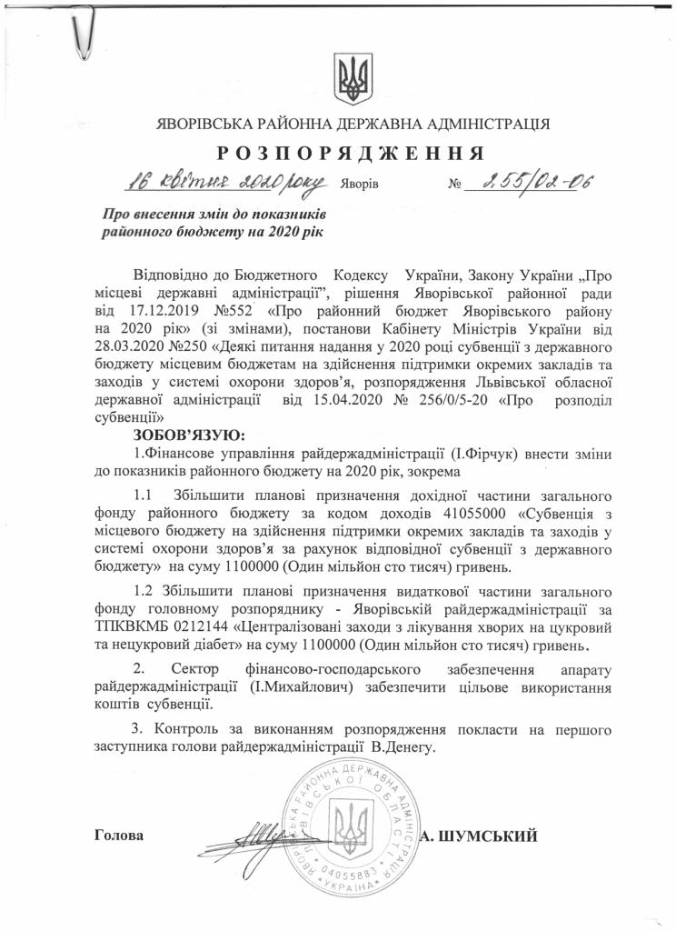 255/02-06 2020-04-16 Про внесення змін до показників районного бюджету на 2020 рік