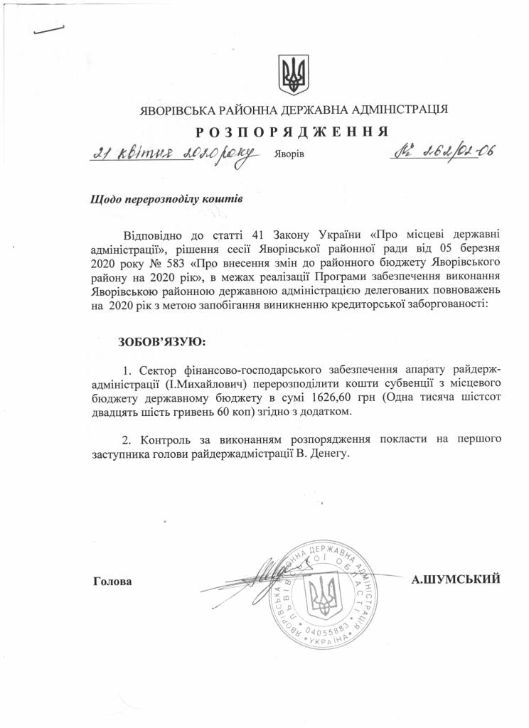 262/02-06 2020-04-21 Щодо перерозподілу коштів