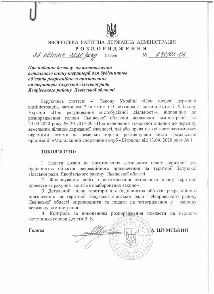 271/02-06 2020-04-28 Про надання дозволу на виготовлення детального плану території для будівництва об'єктів рекреаційного призначення на території Залузької сільської ради Яворівського району Львівської області