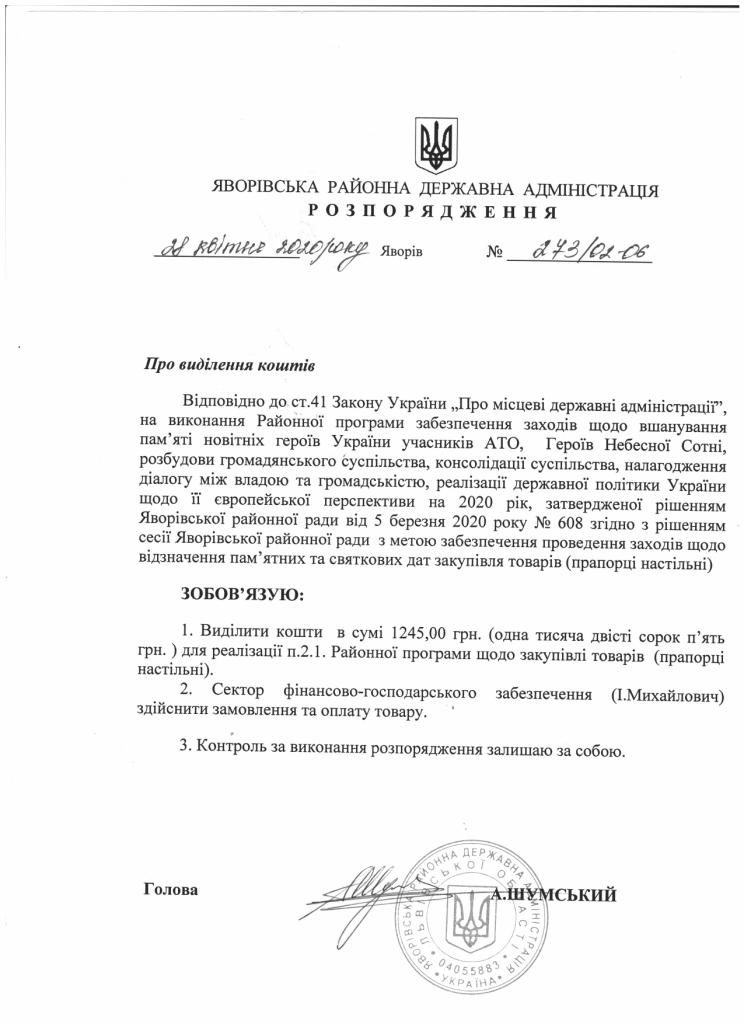 257/02-06 2020-04-17 Про спрямуваняя коштів резервного фонду районного бюджету