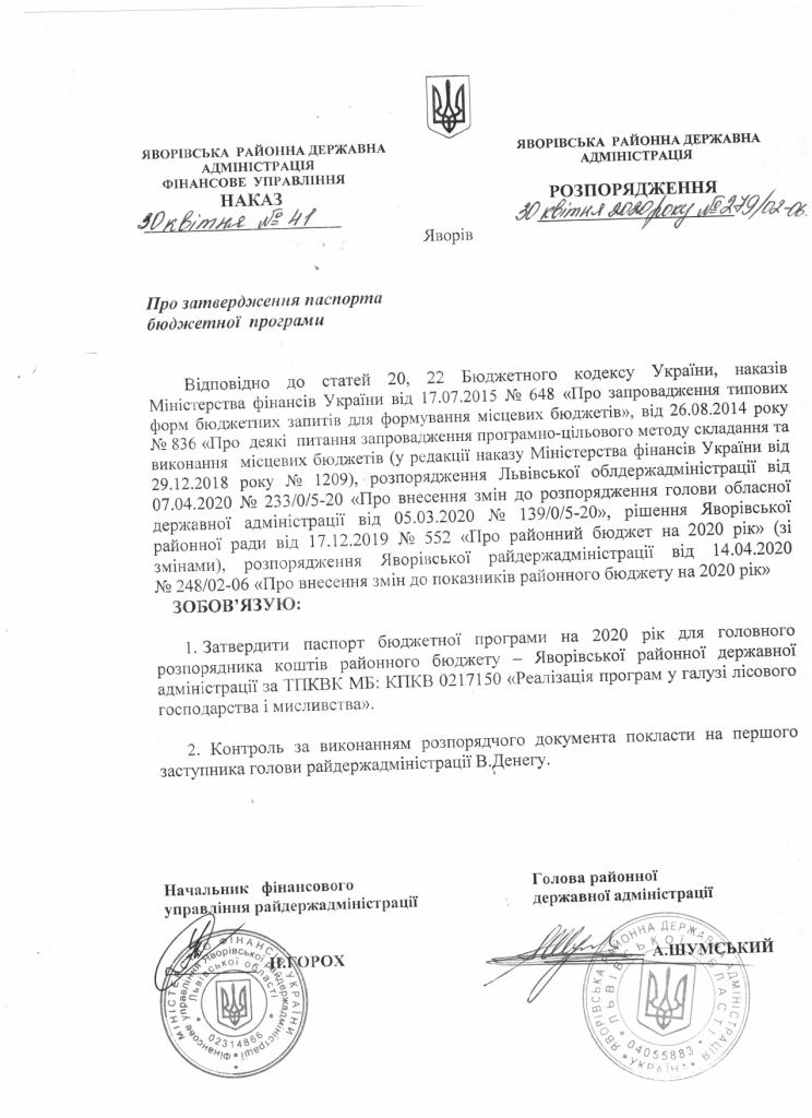 279/02-06 2020-04-30 Про затвердження паспорта бюджетної програми