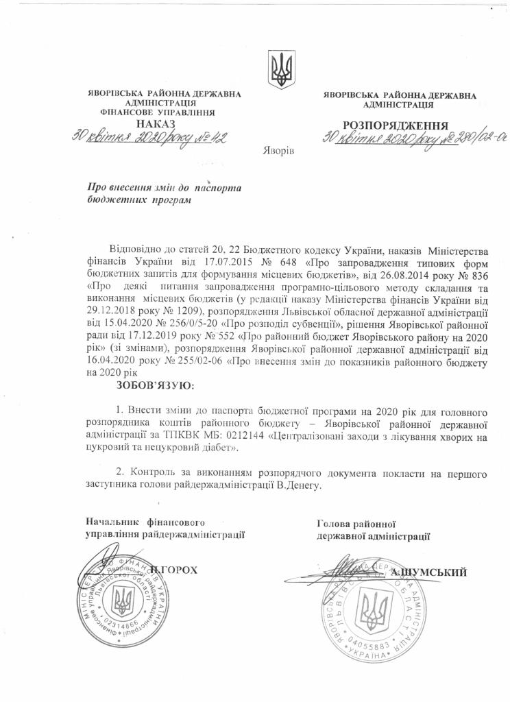 280/02-06 2020-04-30 Про внесення змін до паспорта бюджетних програм