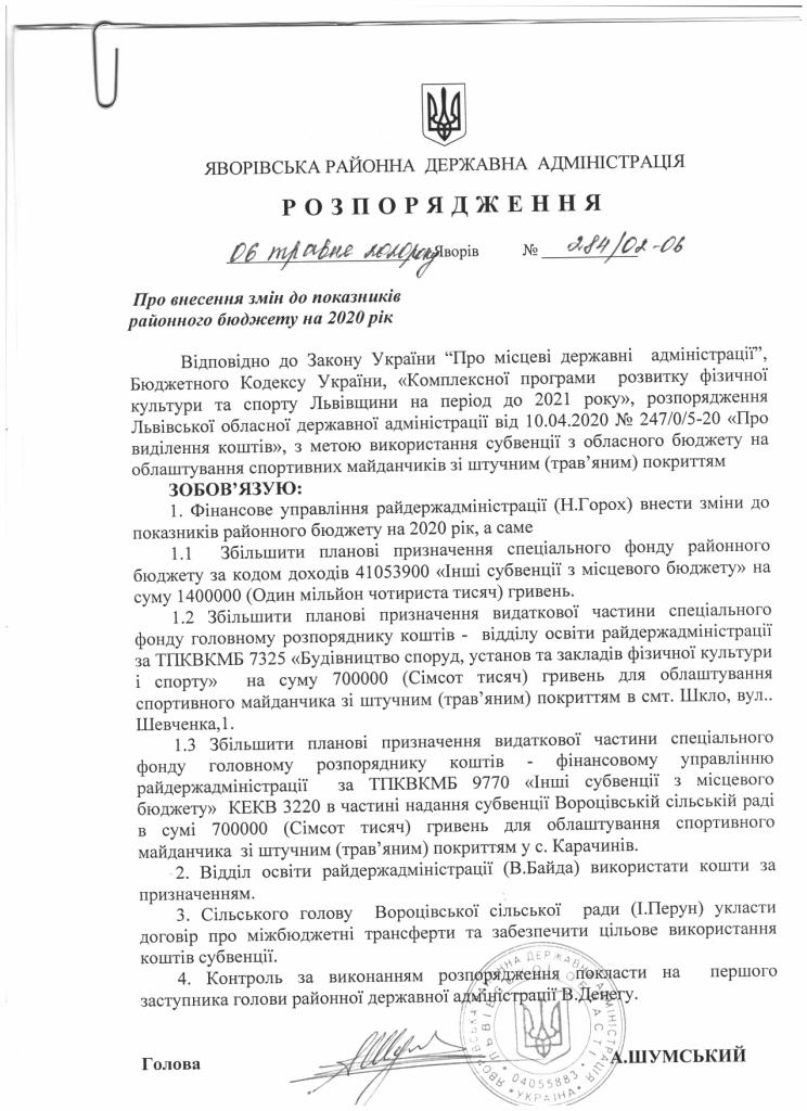 284/02-06 2020-05-06 Про внесення змін до показників районного бюджету на 2020 рік