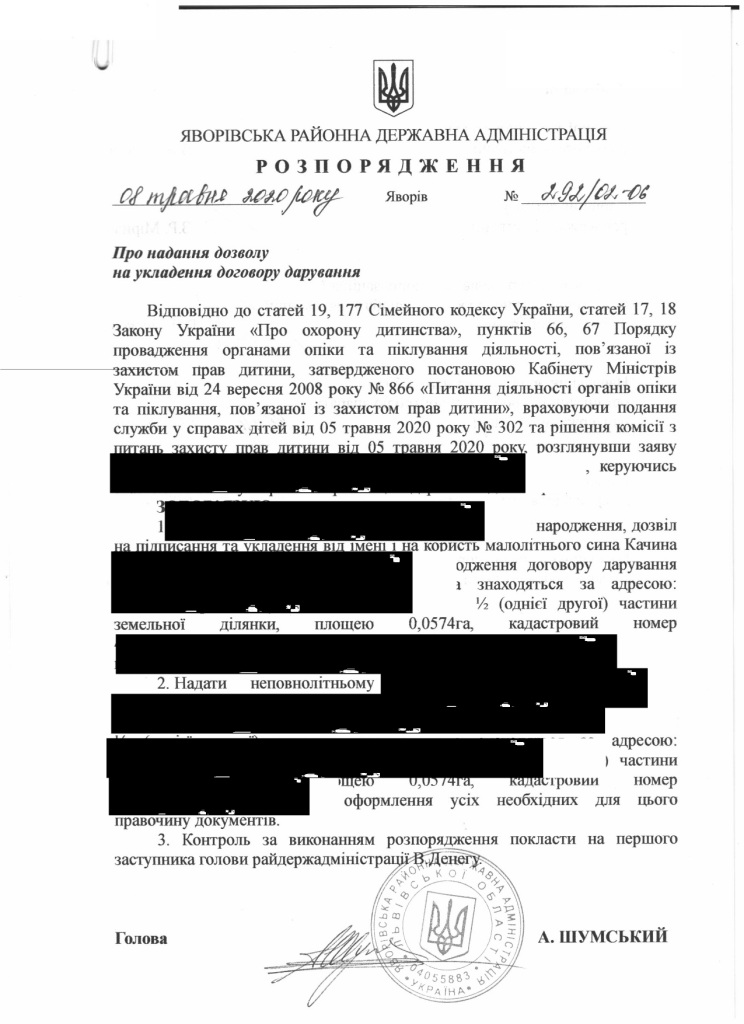 292/02-06 2020-05-08 Про надання дозволу на укладення договору дарування