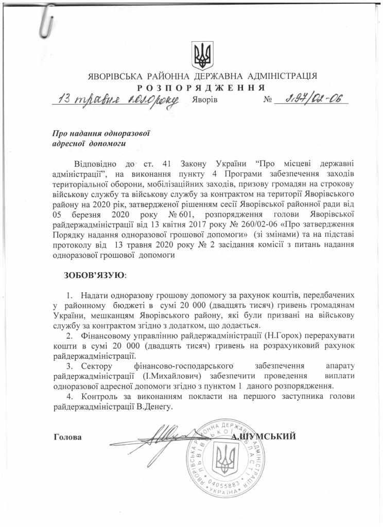 278/02-06 2020-04-30 Про надання одноразової адресної допомоги