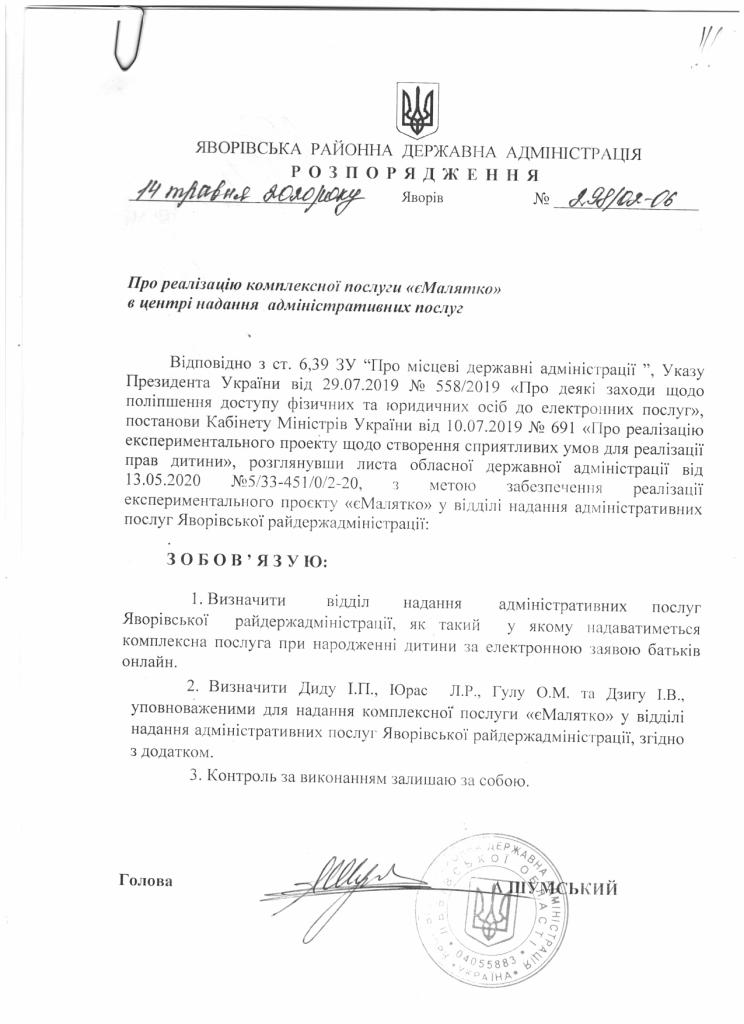 298/02-06 2020-05-14 Про реалізацію комплексної послуги "єМалятко" в центрі надання адміністративних послуг