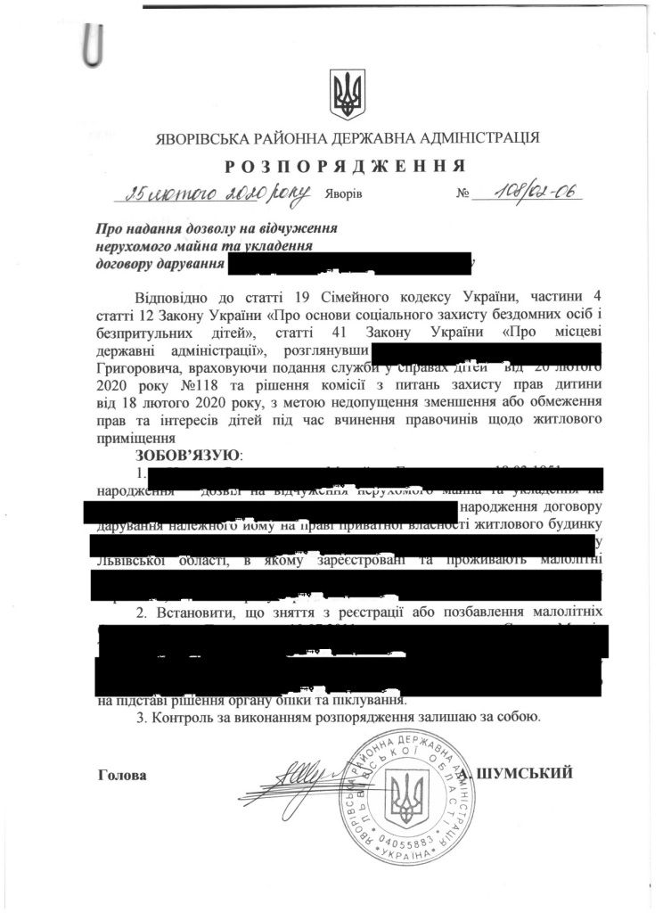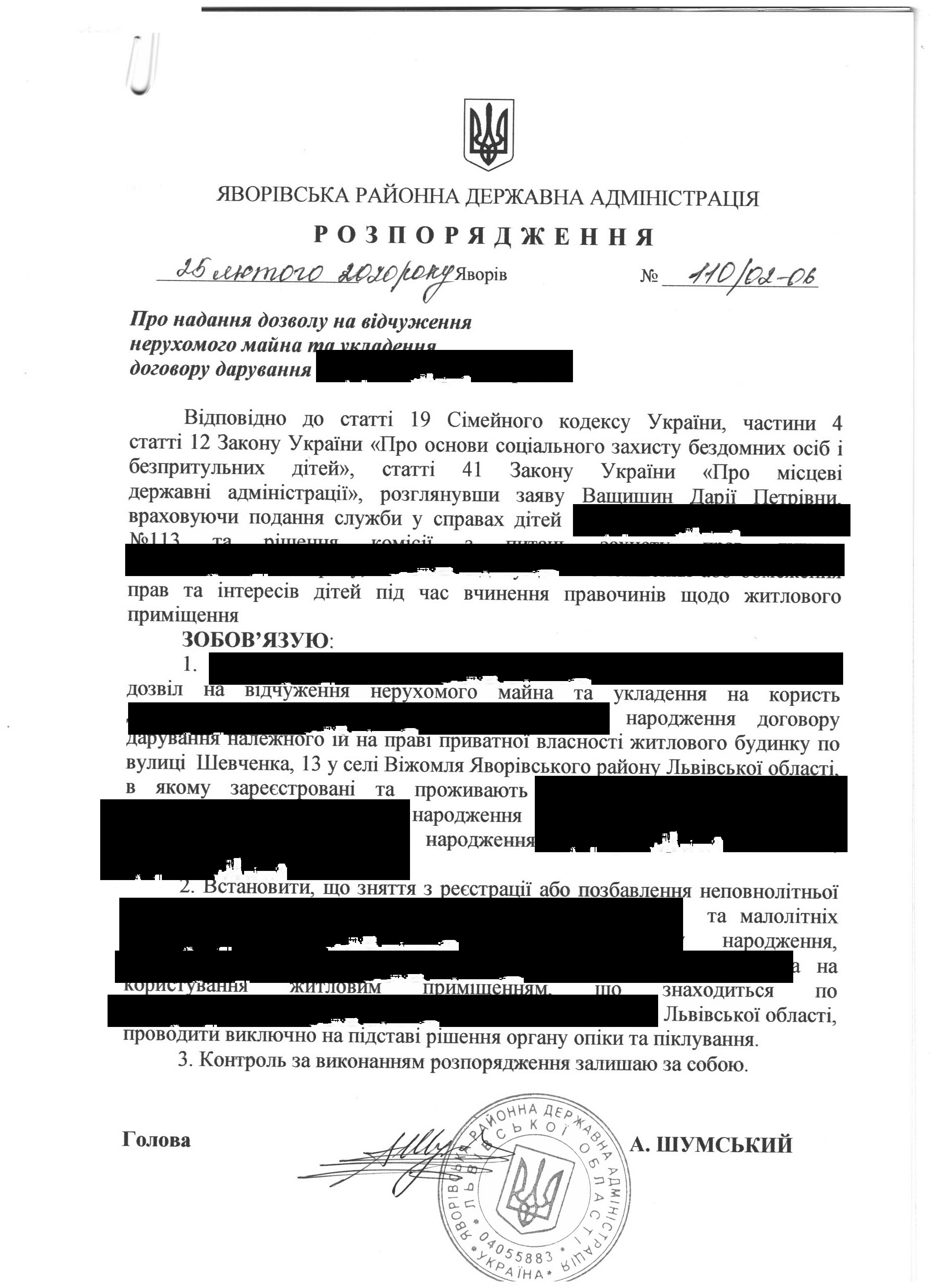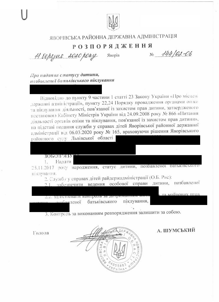 Про надання статусу дитині, позбавленої батьківського піклування |