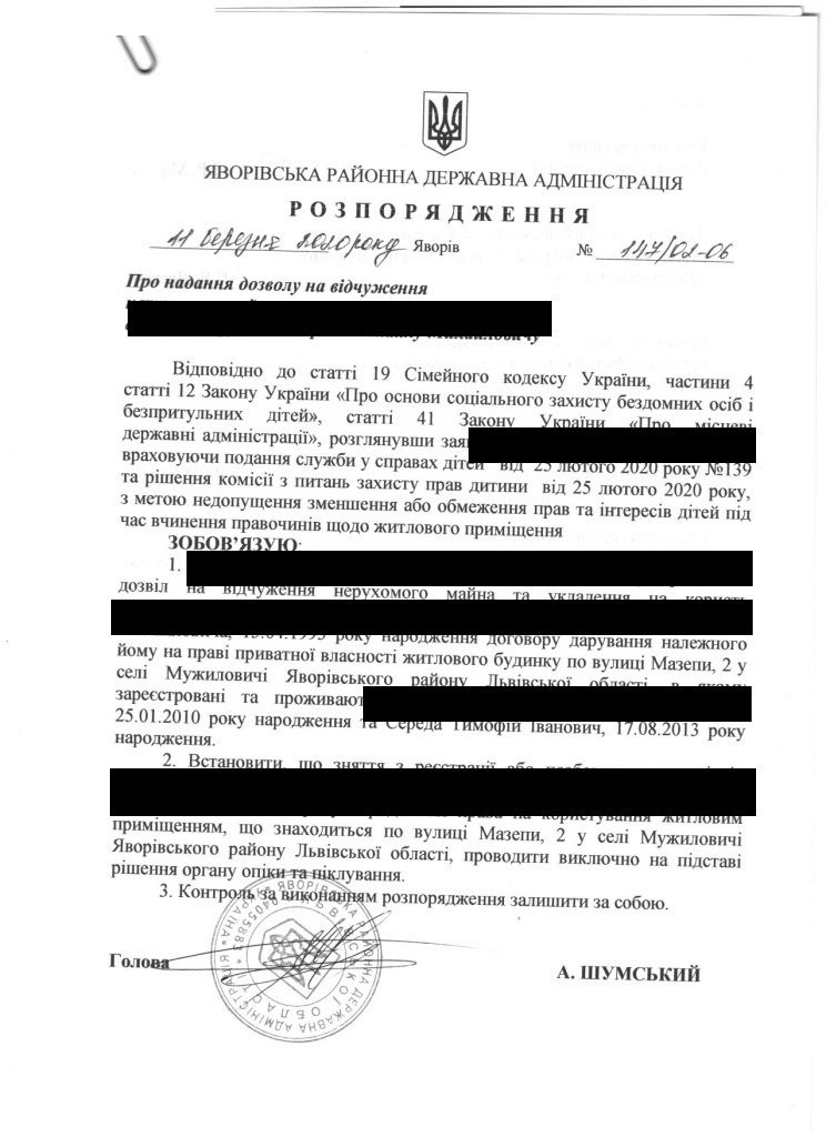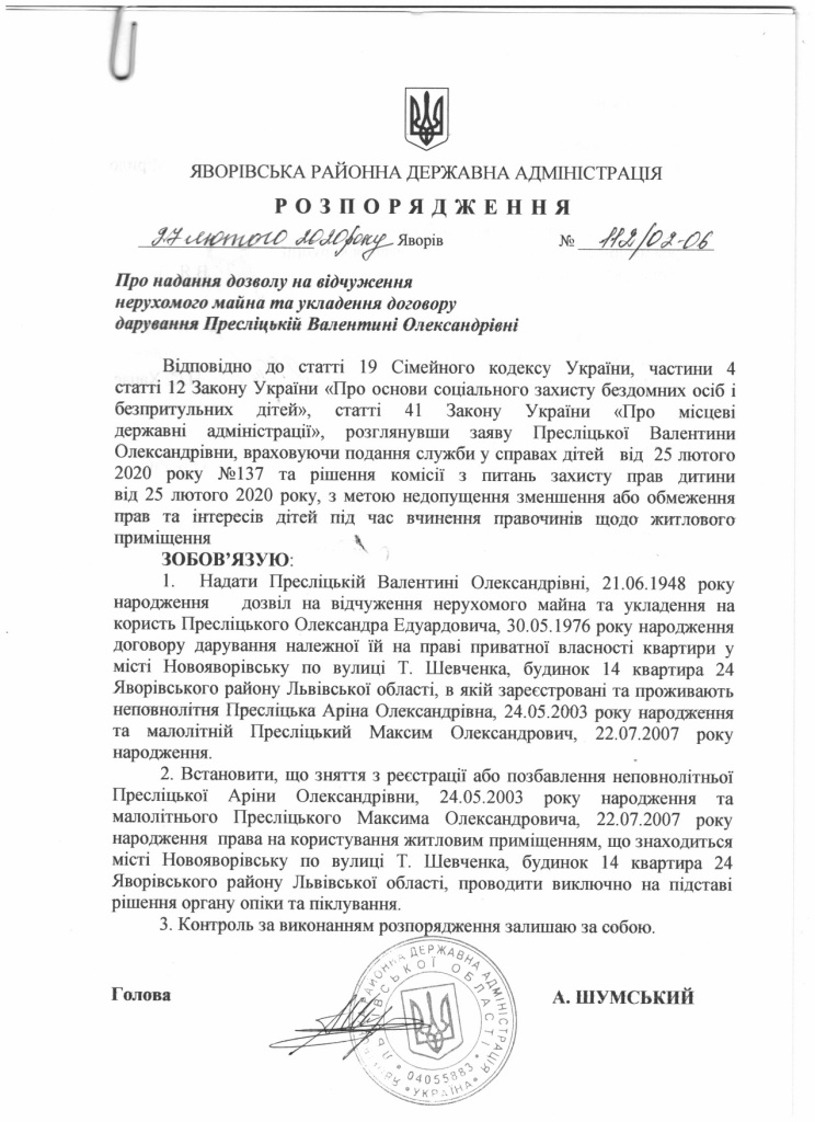Про надання дозволу на відчуження нерухомого майна та укладення договору дарування |