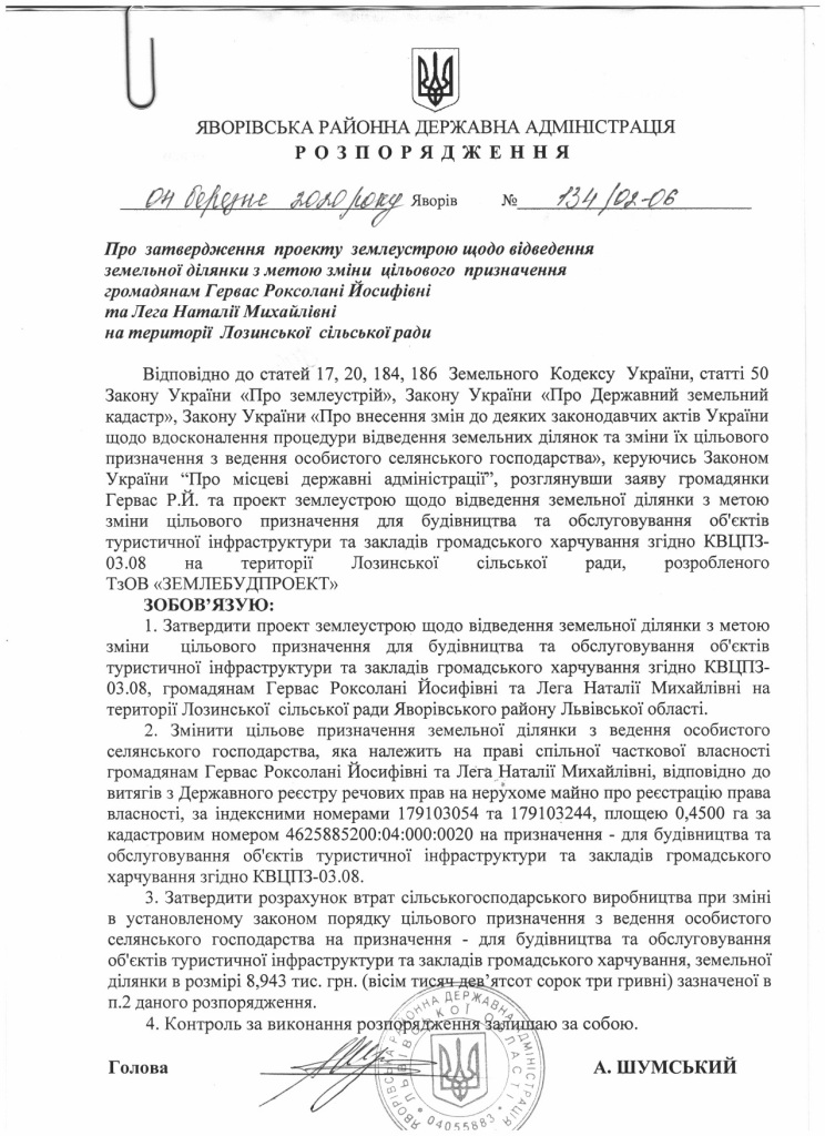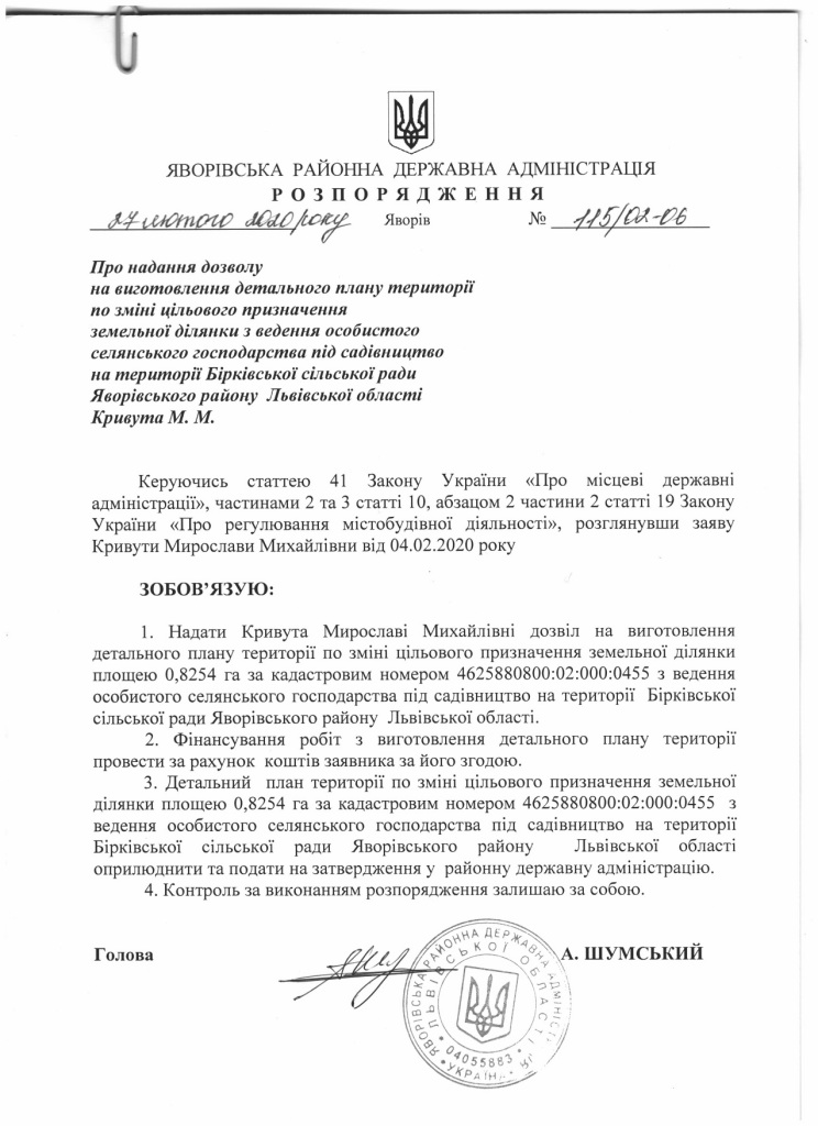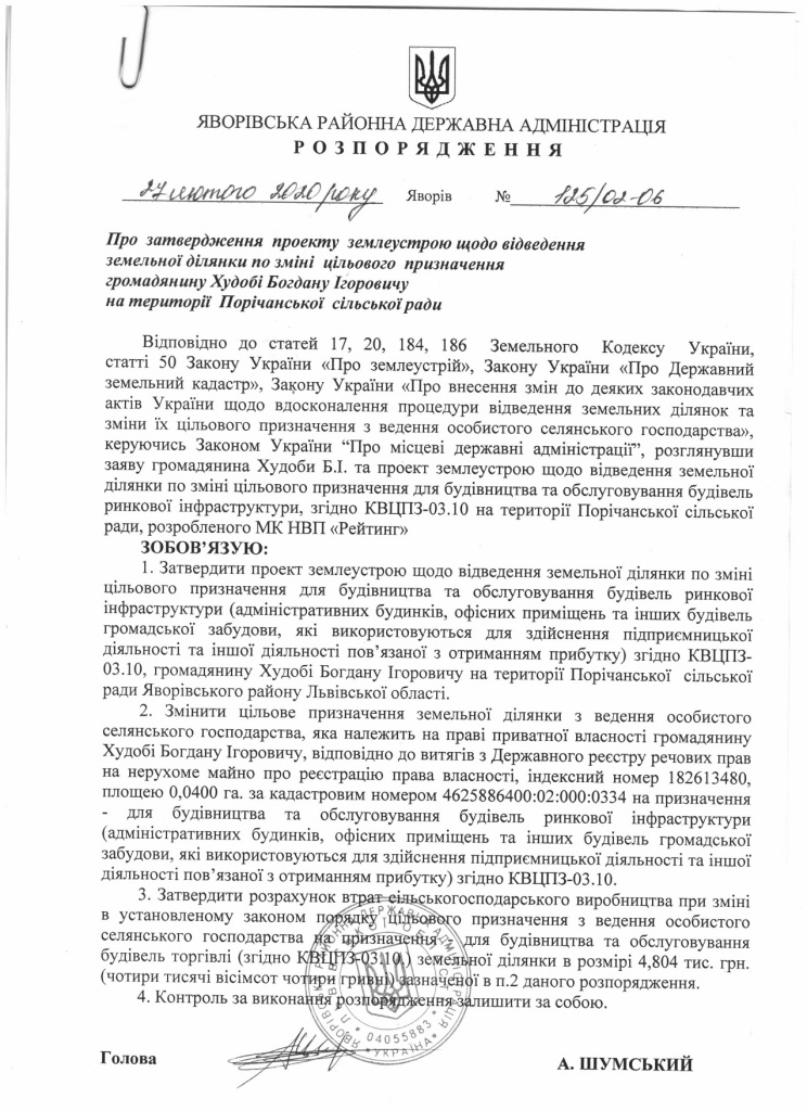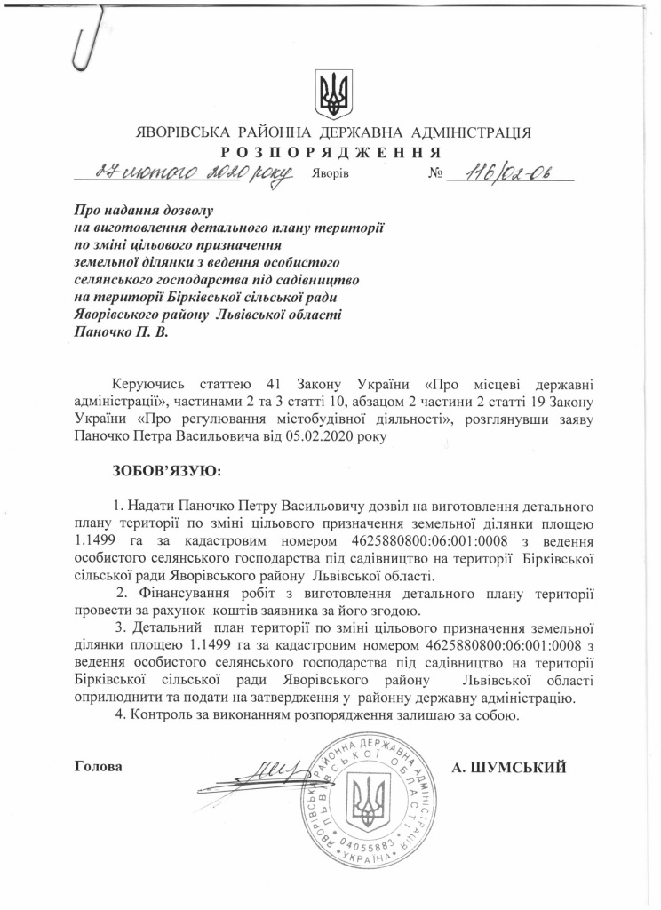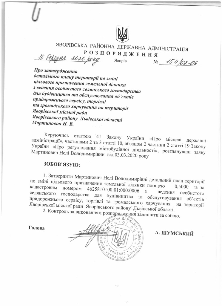 Про затвердження детального плану території по зміні цільового призначення земельної ділянки з ведення особистого селянського господарства для будівництва та обслуговування об'єктів придорожнього сервісу, торгівлі та громадського харчування на території Яворівської міської ради Яворівського району Львівської області |