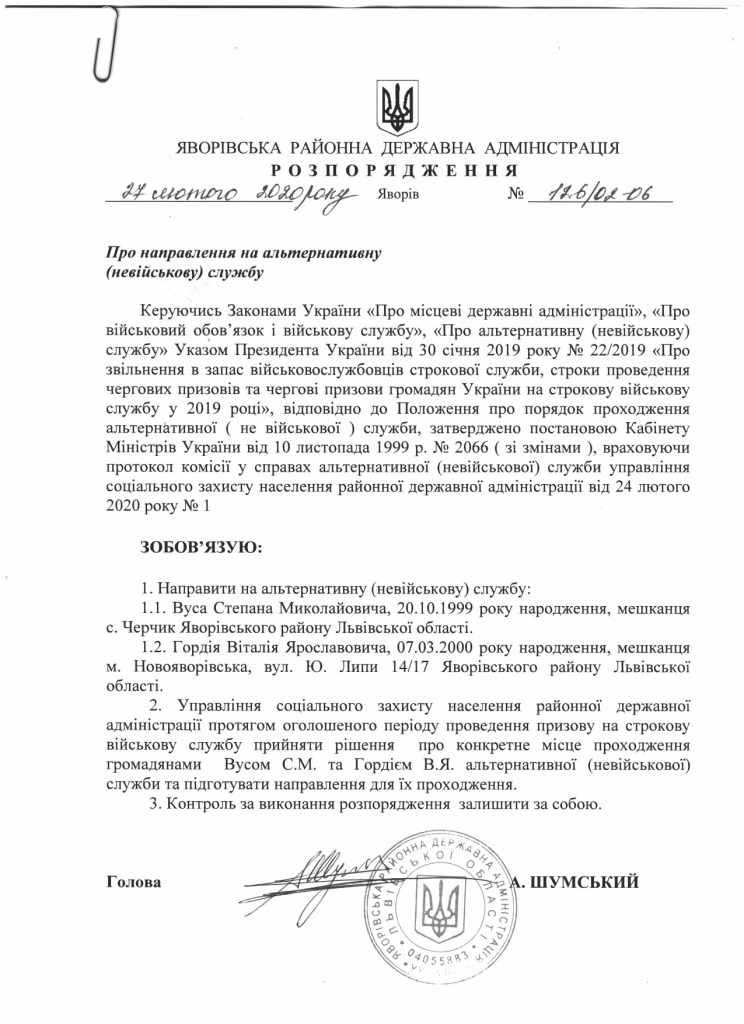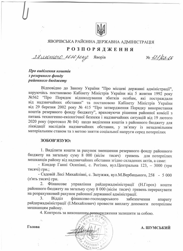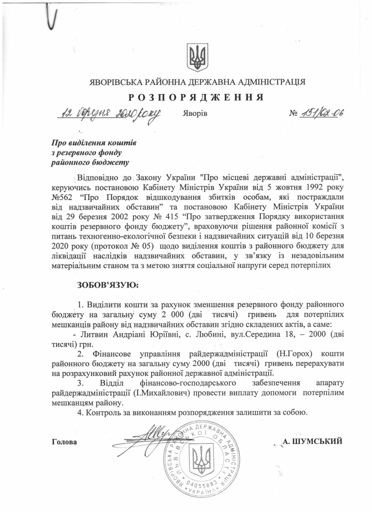 Про внесення змін до розпорядження районної державної адміністрації від 31 жовтня 2018 року №1022/02-06 "Про створення комісії з питань надання одноразової грошової допомоги головою Яворівської районної державної адміністрації громадянам України, які були призвані на військову службу за контрактом" |
