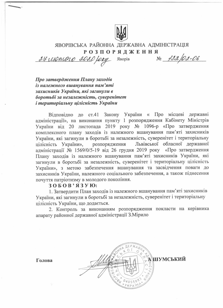Про затвердження Плану заходів із належного вшанування пам'яті захисників України, які загинули в боротьбі за незалежність суверенітету і територіальну цілісність України |