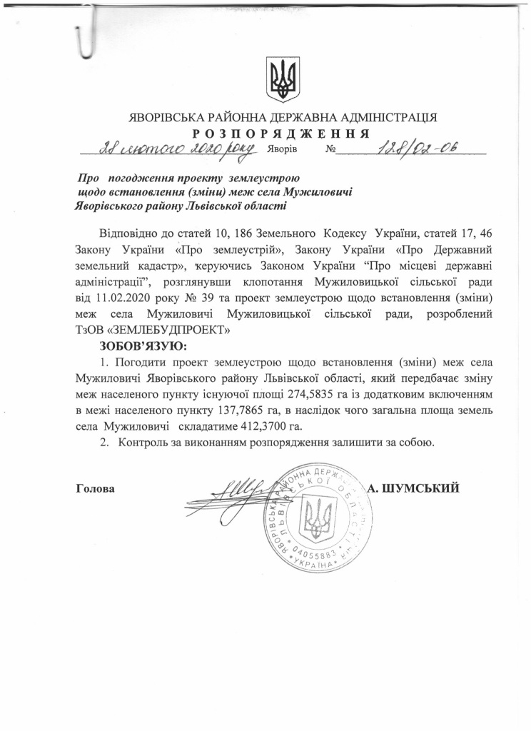 Про погодження проекту землеустрою щодо встановлення (зміни) меж села Мужиловичі Яворівського району Львівської області |