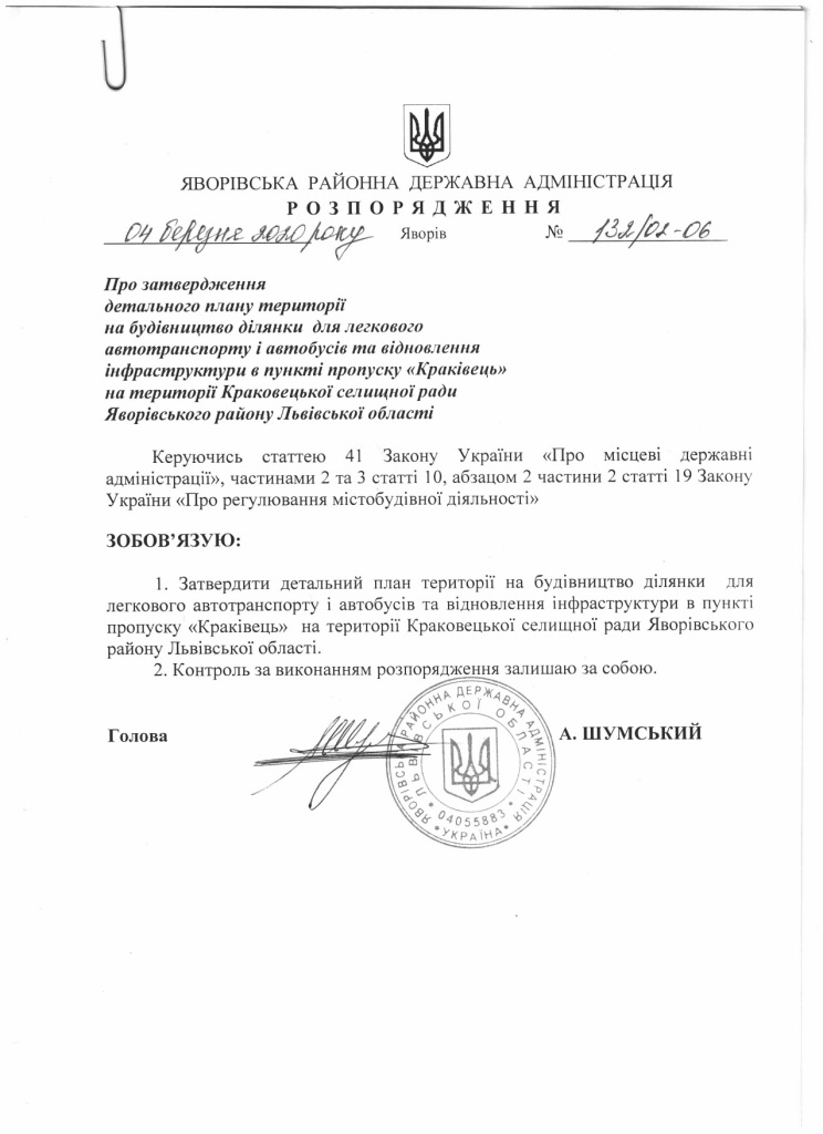 Про затвердження детального плану території на будівництво ділянки для легкового автотранспорту і автобусів та відновлення інфраструктури в пункті пропуску "Краківець" на території Краковецької селищної ради Яворівського району Львівської області |