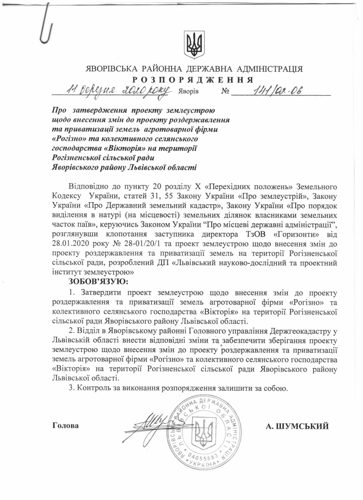 Про затвердження проекту землеустрою щодо внесення змін до проекту роздержавлення та приватизації земель агротоварної фірми "Рогізно" та колективного селянського господарства "Вікторія" на території Рогізненської сільської ради Яворівського району Львівськоїобласті |