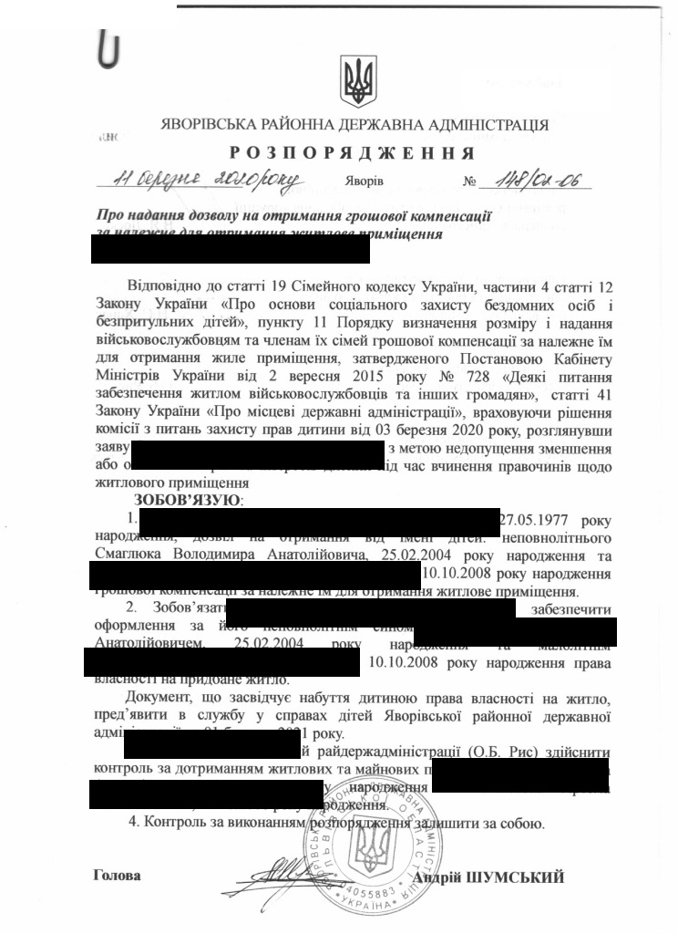 Про надання дозволу на отримання грошової компенсації за належне для отримання житлове приміщення |