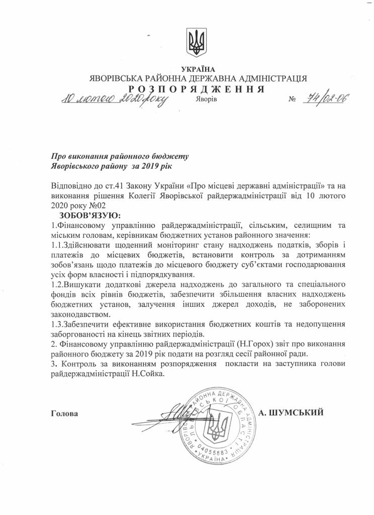 74/02-06 2020-02-10 Про виконання районного бюджету Яворівського району за 2019 рік