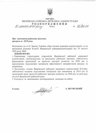 75/02-06 2020-02-10 Про виконання районних цільових програм за 2019 рік