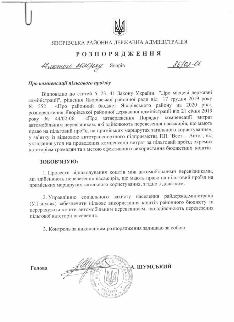 86/02-06 2020-02-17 Про компенсації пільгового проїзду