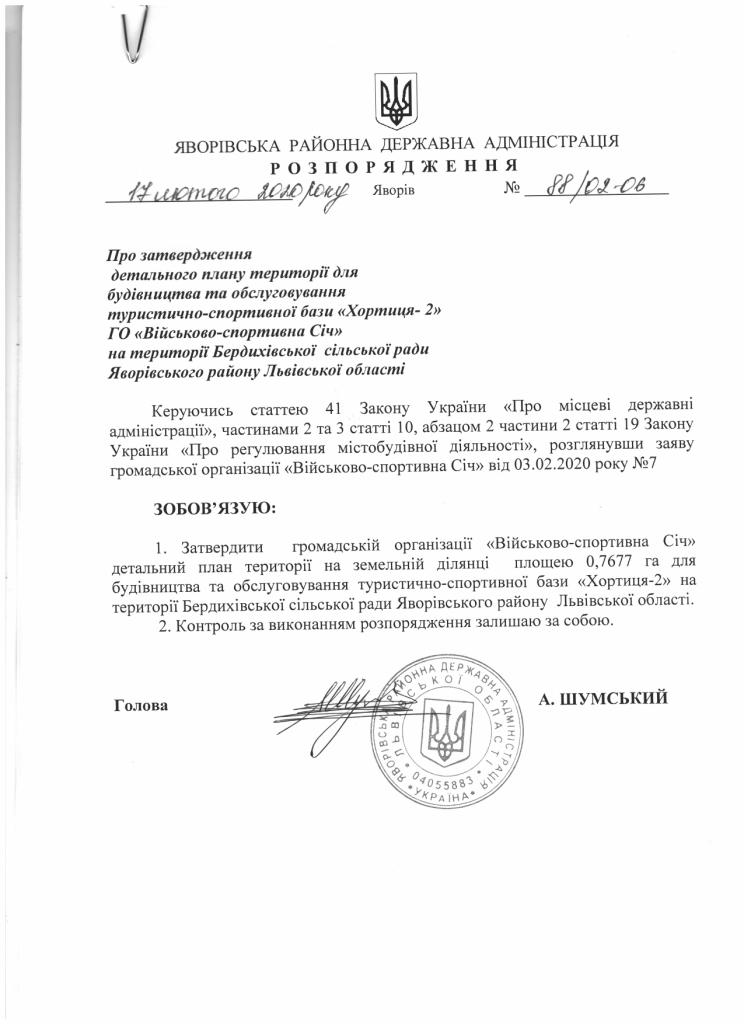88/02-06 2020-02-17 Про затвердження детального плану території для будівництва та обслуговування туристично-спортивної бази