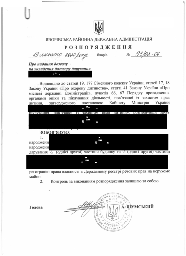 93/02-06 2020-02-19 Про надання дозволу на укладення договору дарування