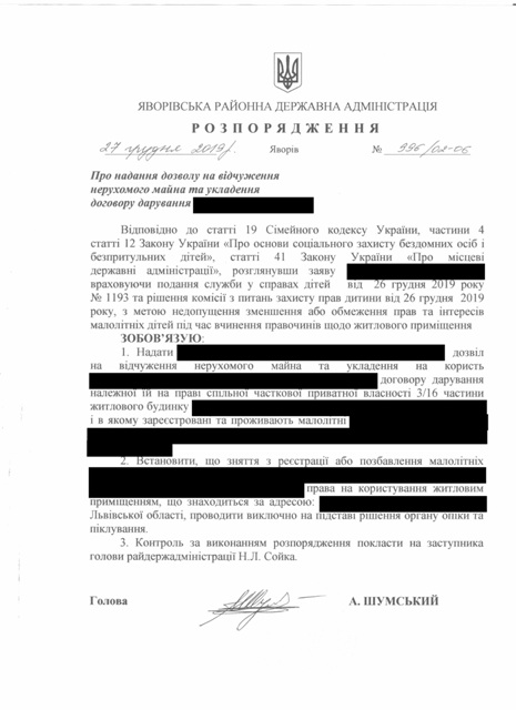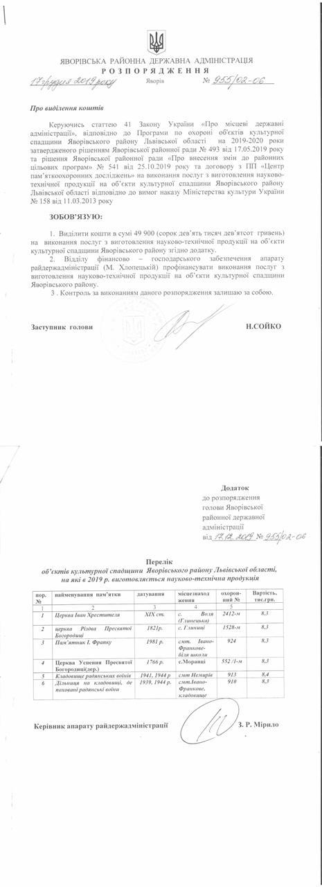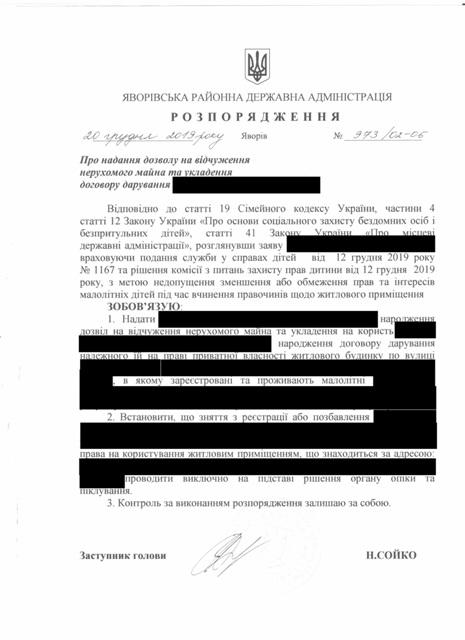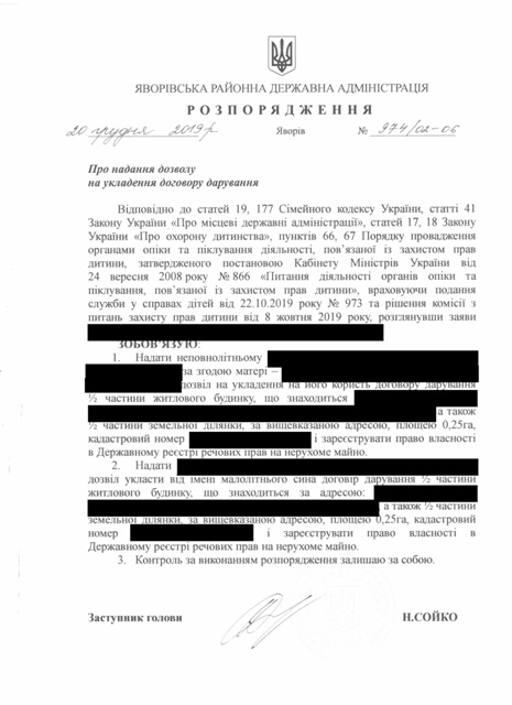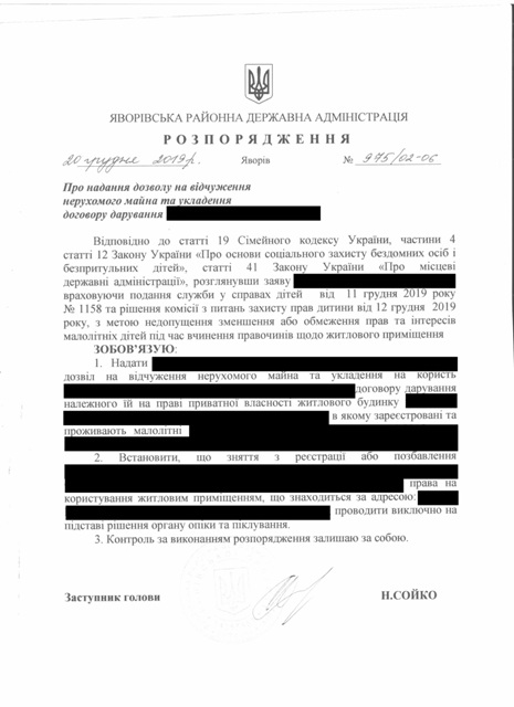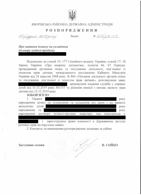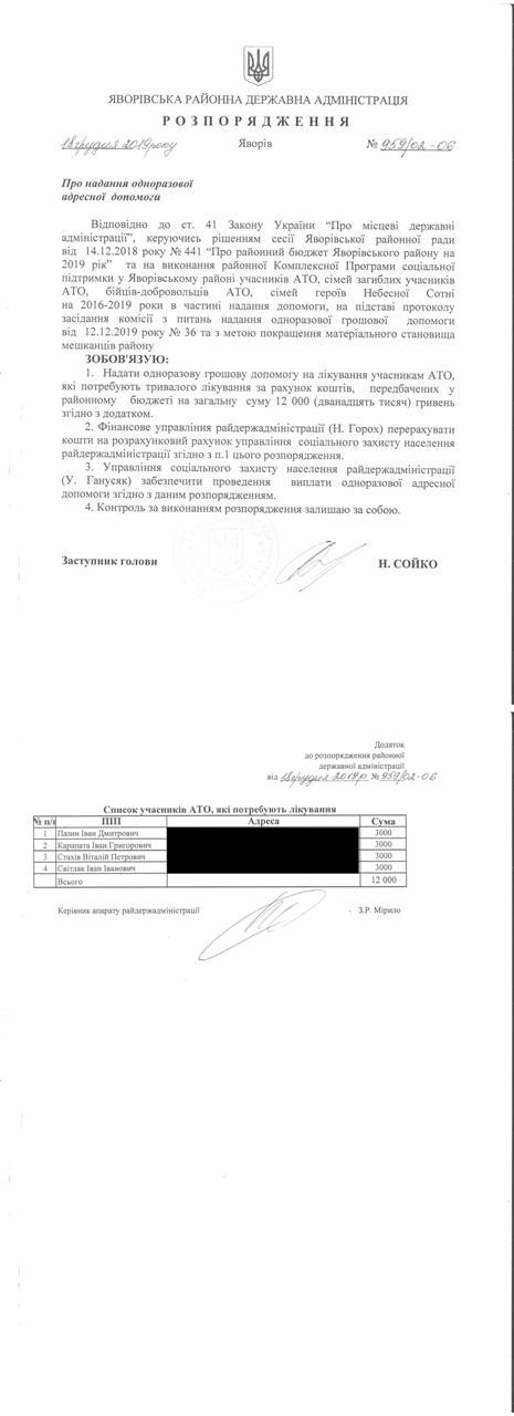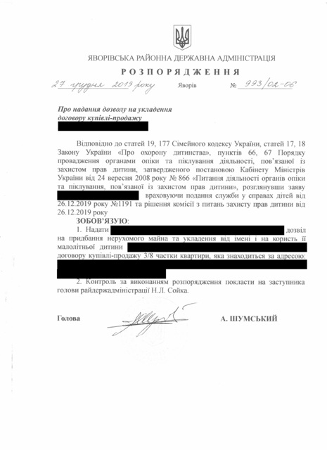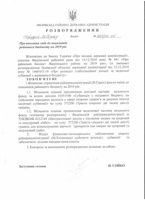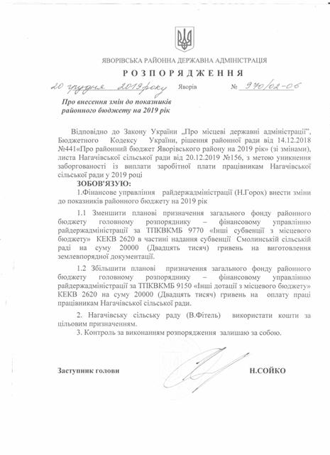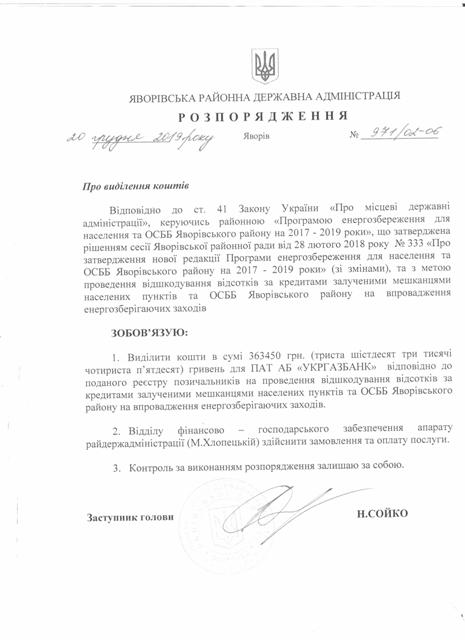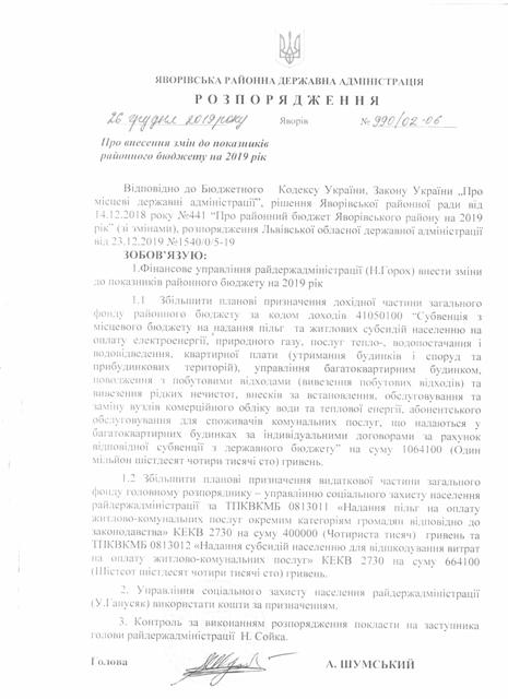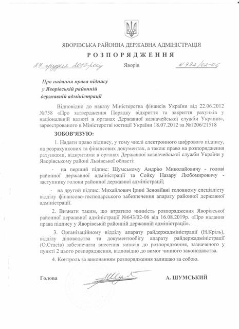 №992/02-06 2019-12-30 Про надання права підпису у Яворівській районній державній адміністрації.