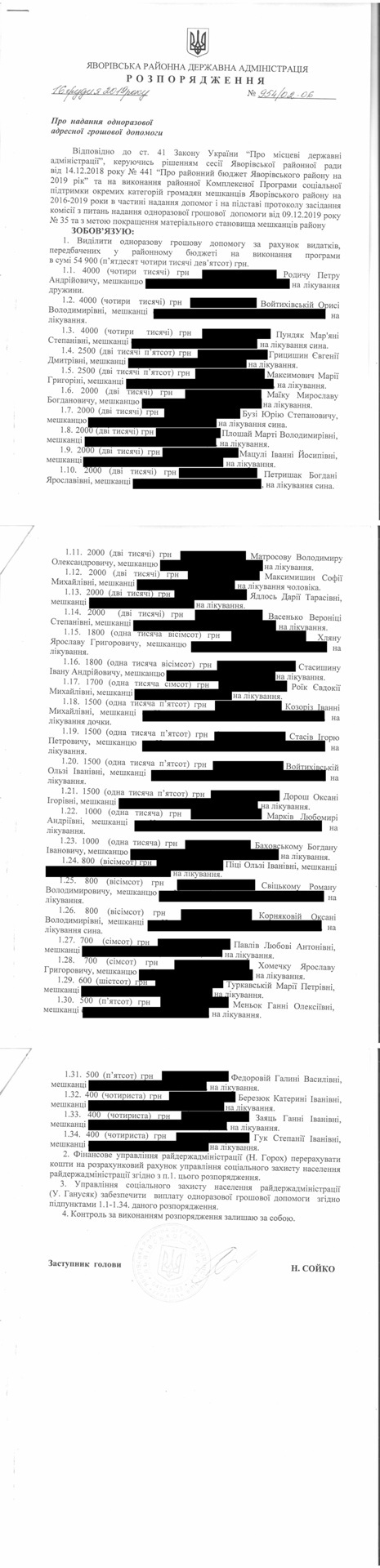 №954/02-06 2019-12-18 Про надання одноразової адресної грошової допомоги