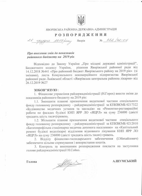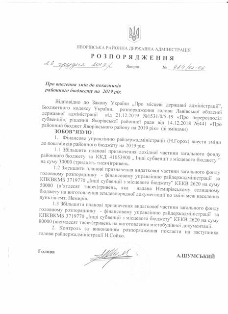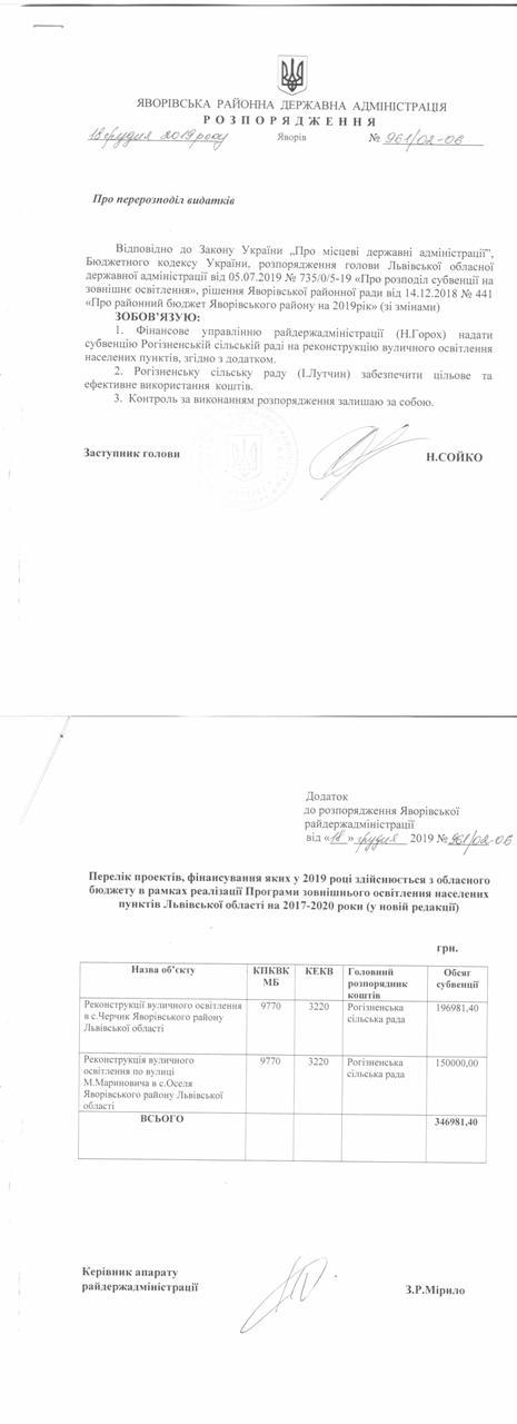 №961/02-06 2019-12-26 Про перерозподіл видатків.