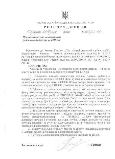 №976/02-06 2019-12-27 Про виділення коштів.