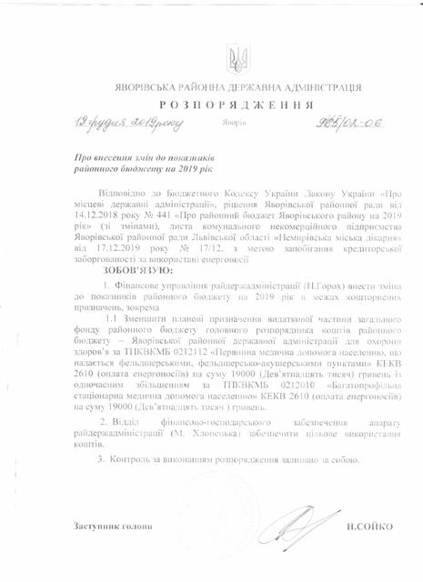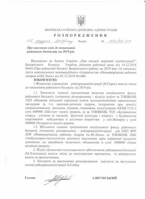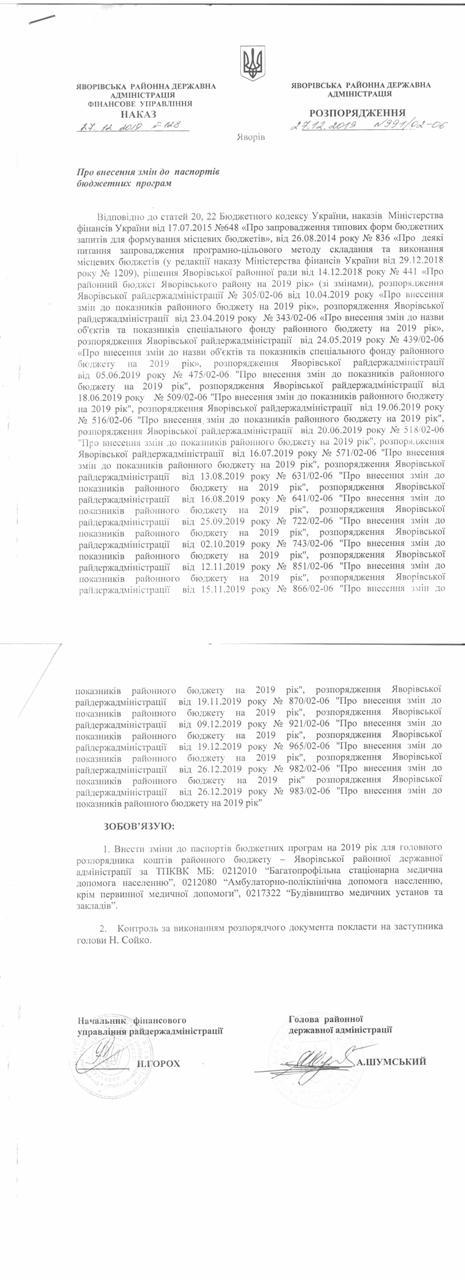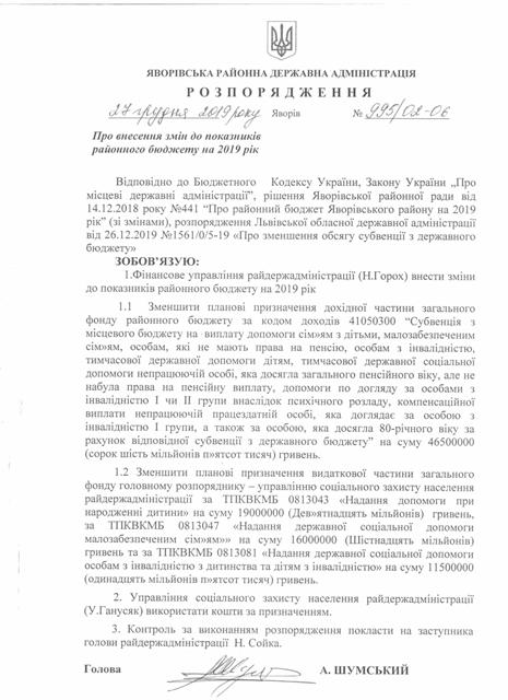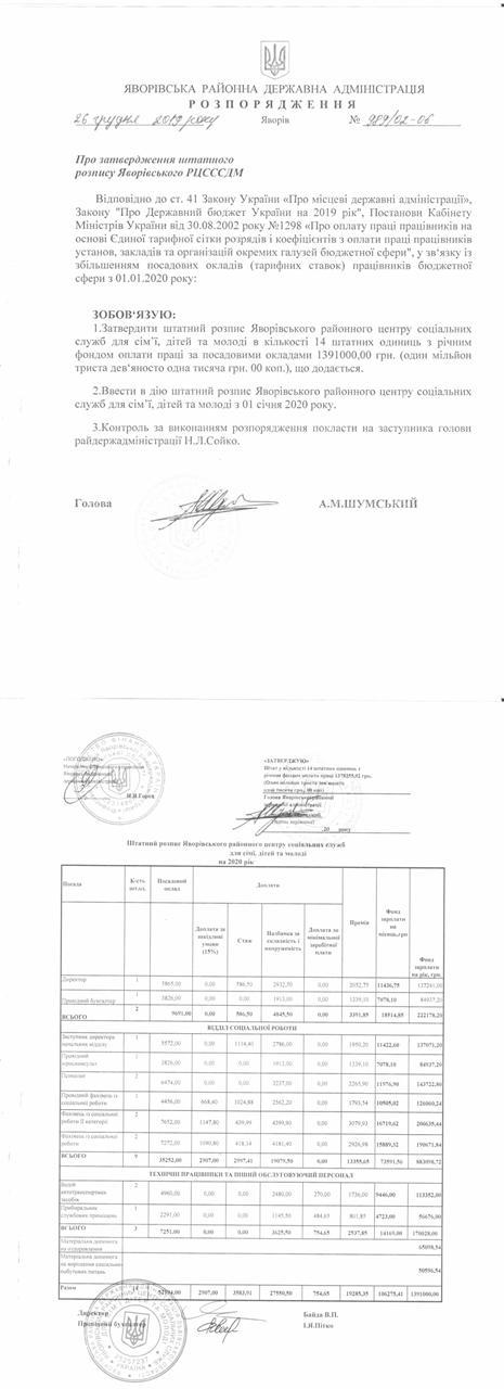 №989/02-06 2019-12-30 Про затвердження штатного розпису Яворівського РЦСССДМ.