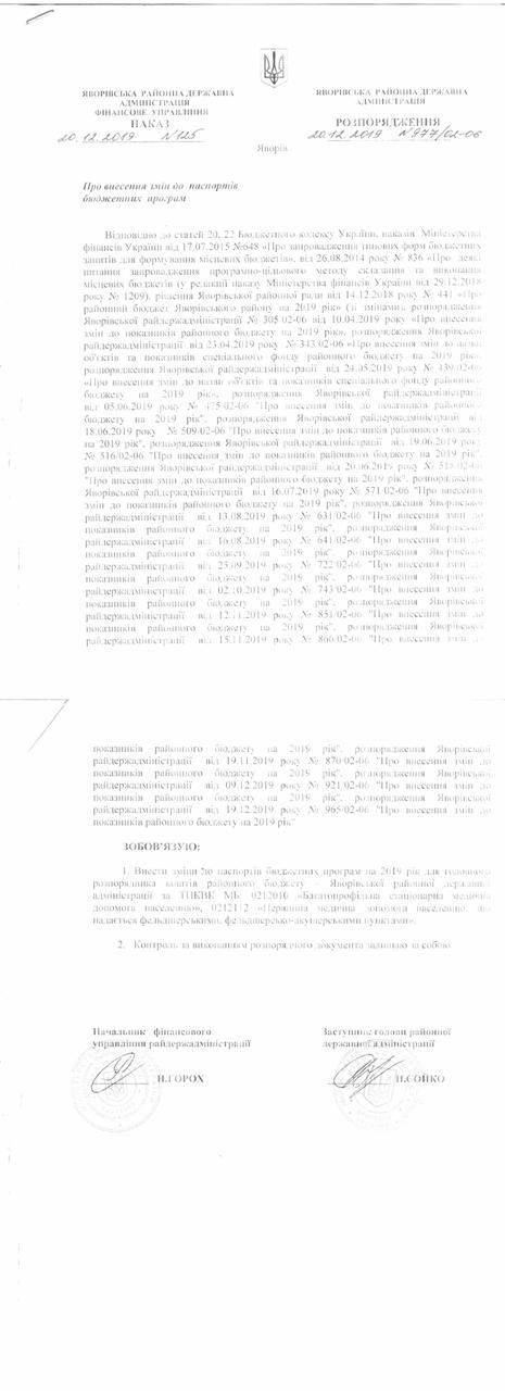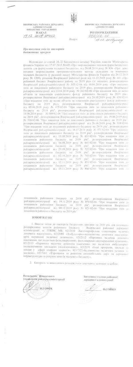 №966/02-06 2019-12-26 Про внесення змін до паспортів бюджетних програм.