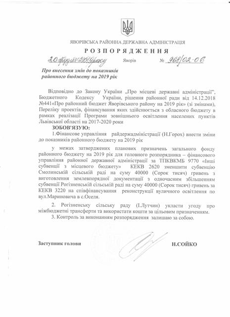 №978/02-06 2019-12-30 Про перерозподіл субвенції