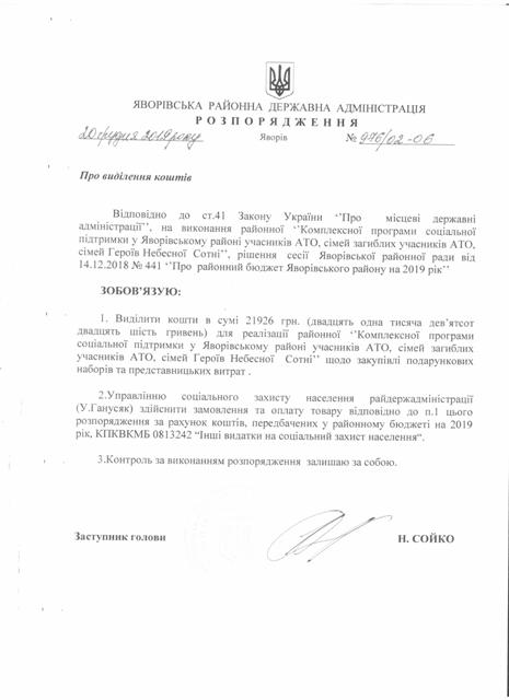 №967/02-06 2019-12-26 Про виділення коштів.