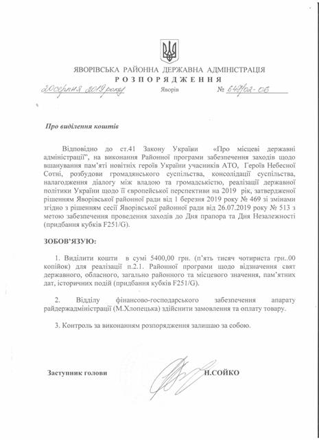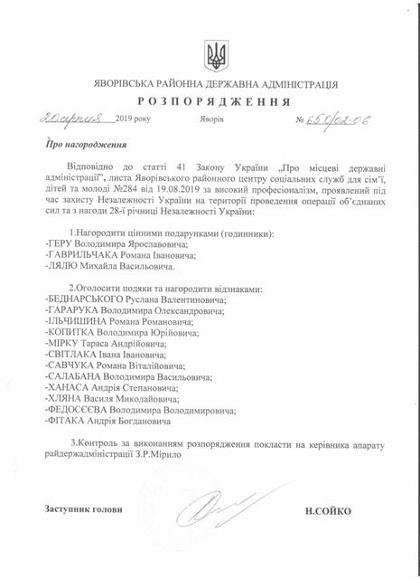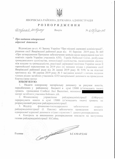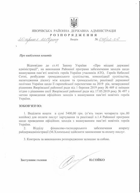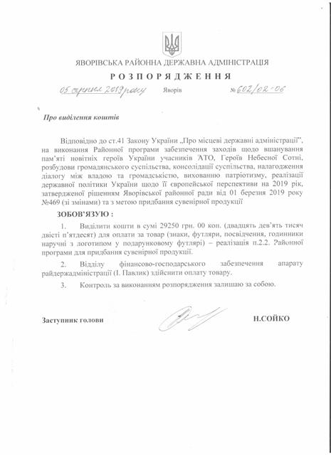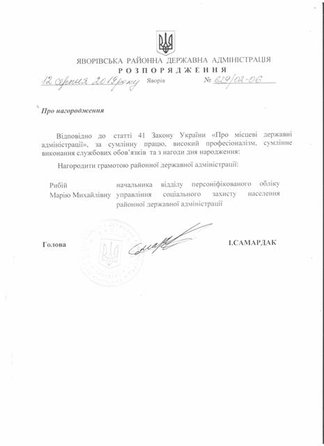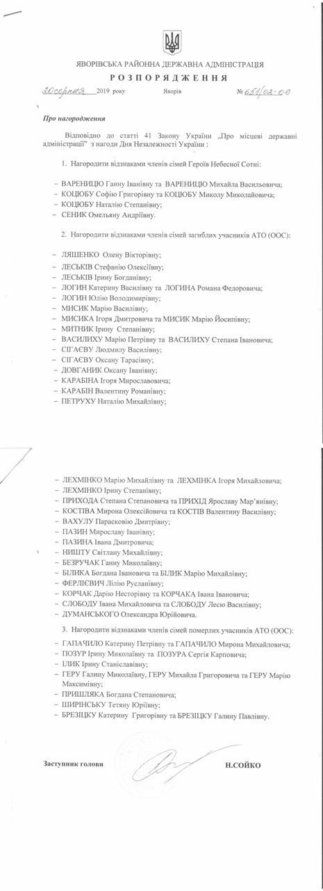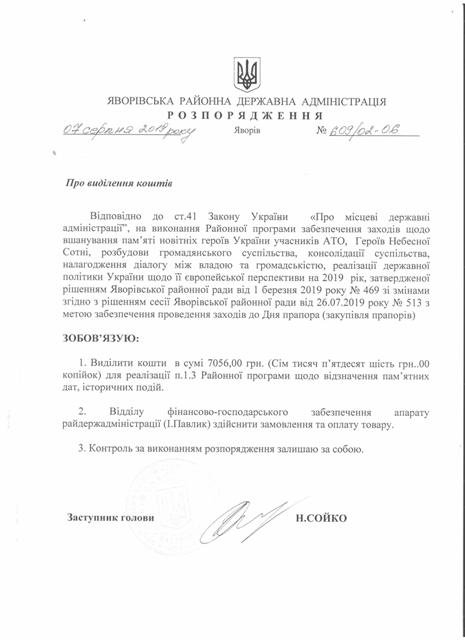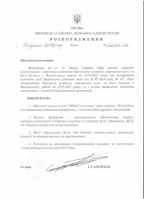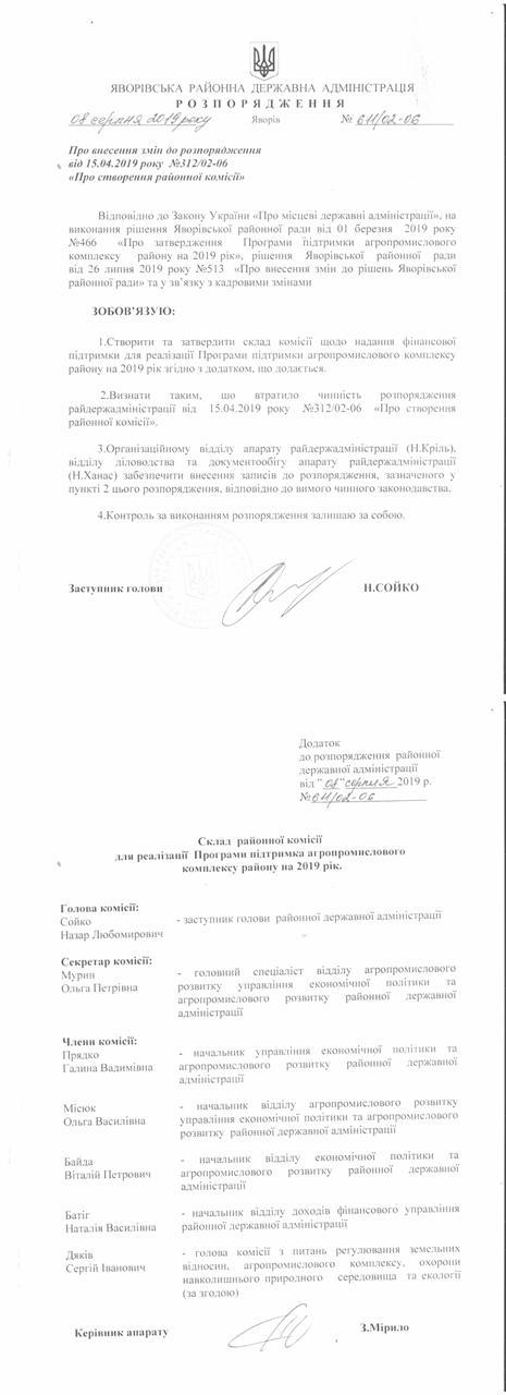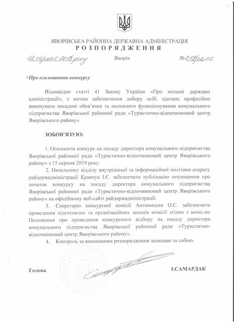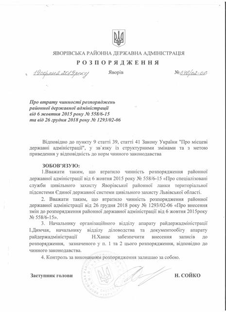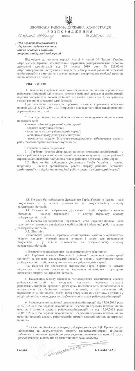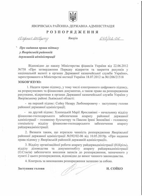 №643/02-06 2019-08-21 Про надання права підпису у Яворівській районній державній адміністрації