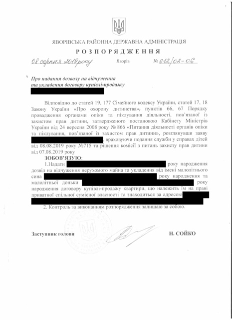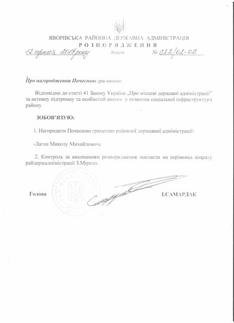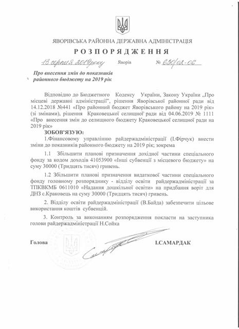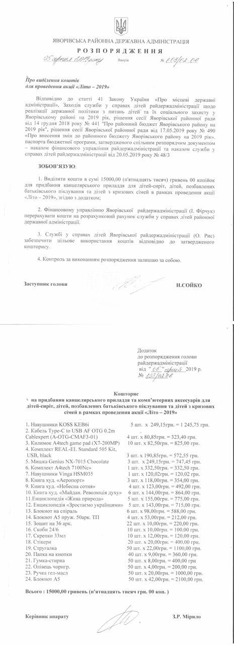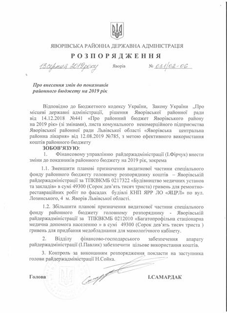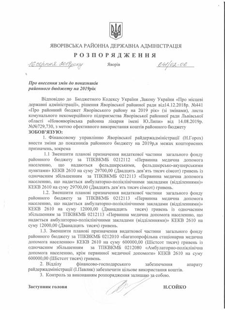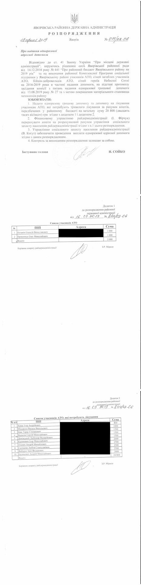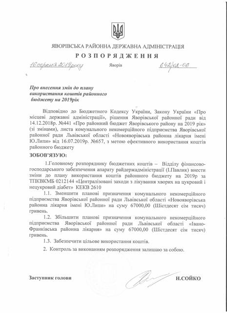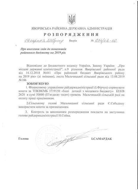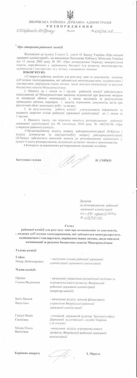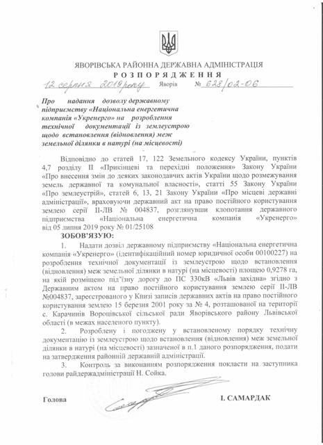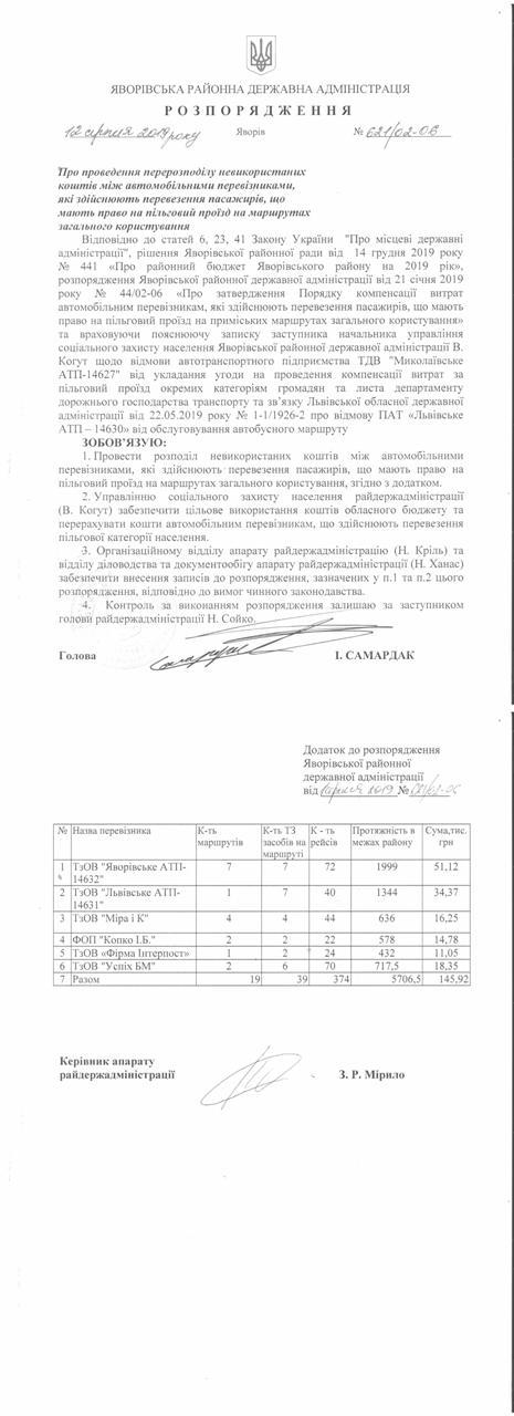 №643/02-06 2019-08-21 Про надання права підпису у Яворівській районній державній адміністрації