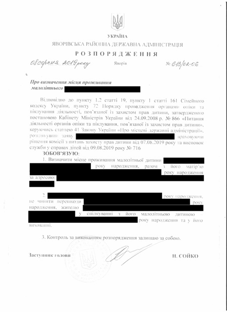 №613/02-06 2019-08-13 Про визначення місця проживання малолітнього