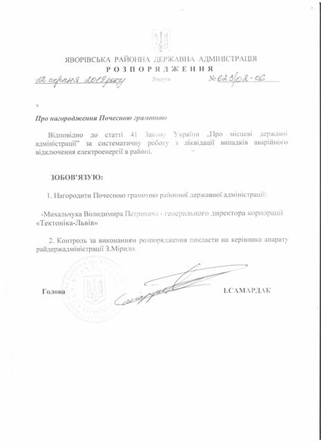 №623/02-06 2019-08-16 Про нагородження Почесною грамотою