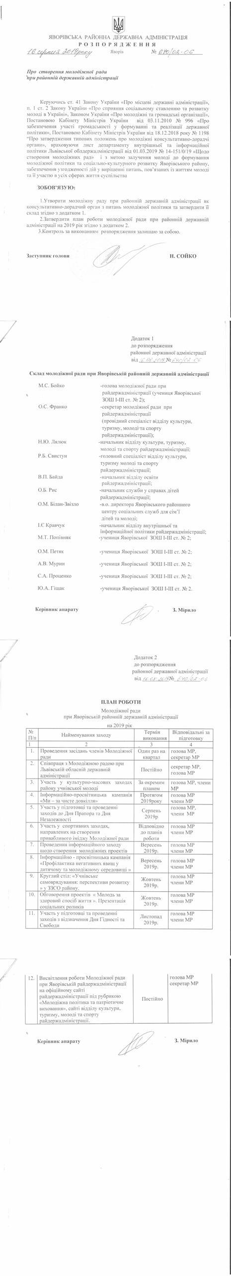 №640/02-06 2019-08-21 Про створення молодіжної ради при районній державній адміністрації