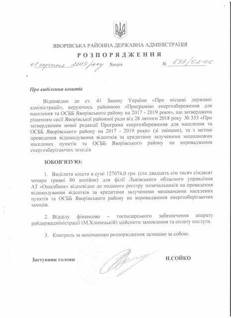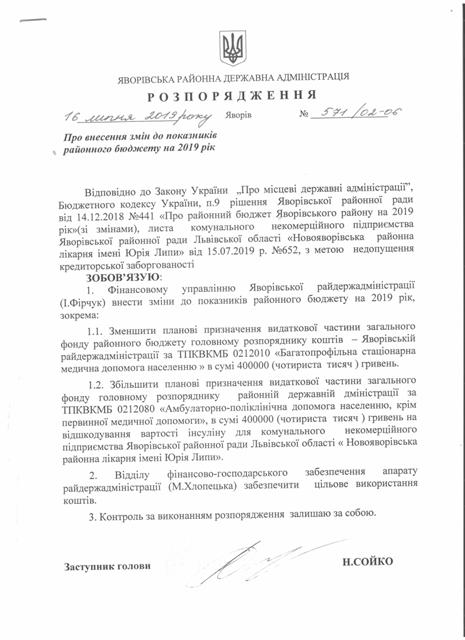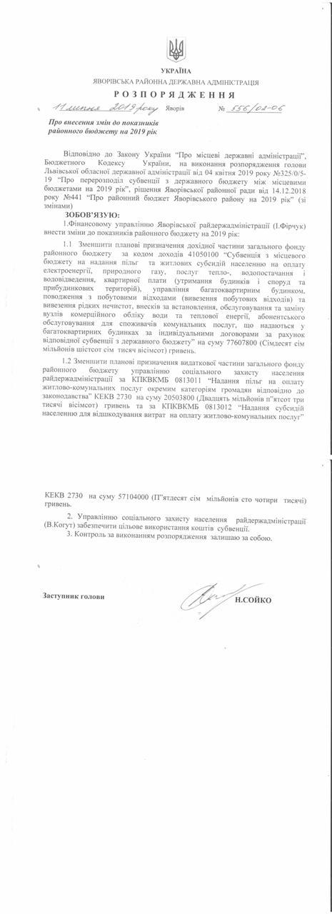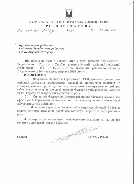 №578/02-06 2019-07-29 Про виконання районного бюджету Яворівського району за перше півріччя 2019 року