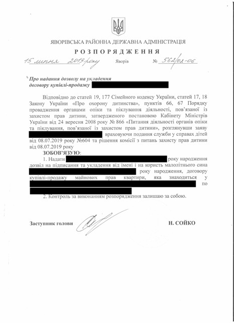 №562/02-06 2019-07-19 Про надання дозволу на укладення договору купівлі-продажу