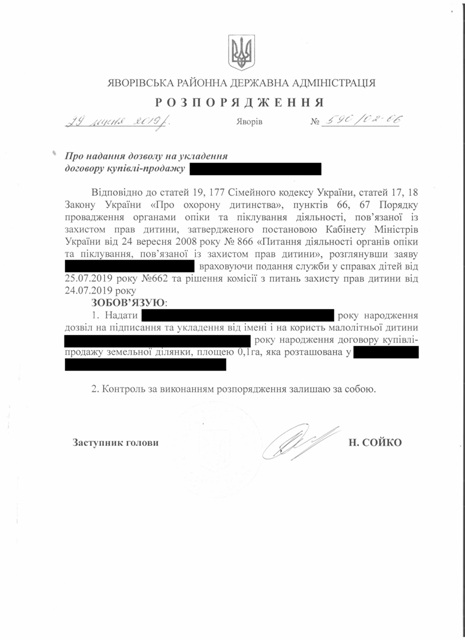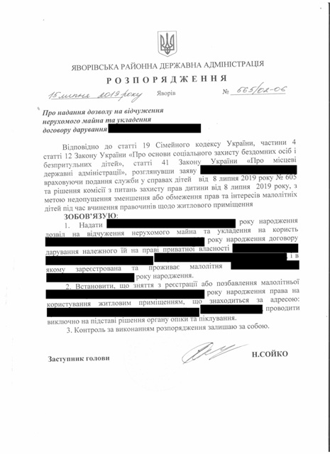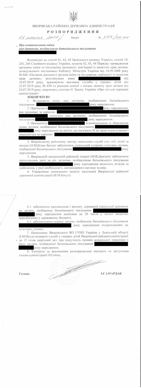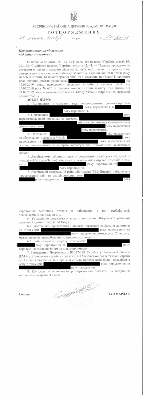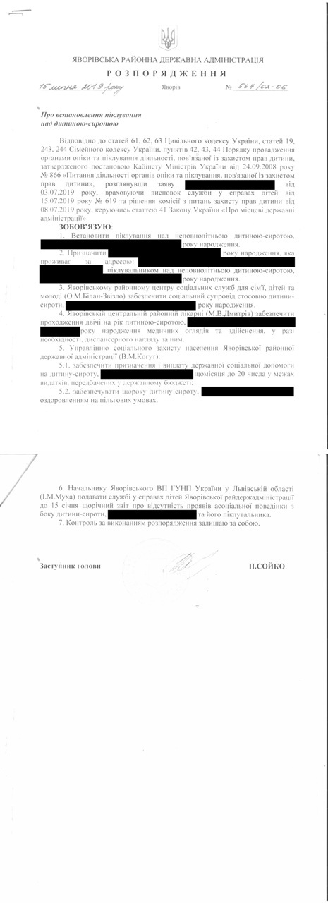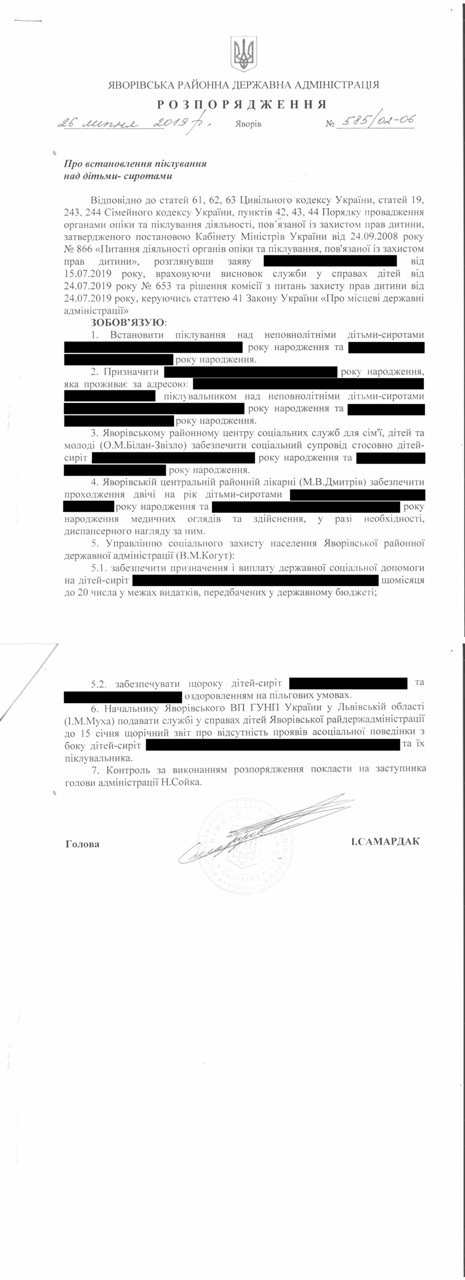 №586/02-06 2019-08-01 Про встановлення піклування над дітьми-сиротами