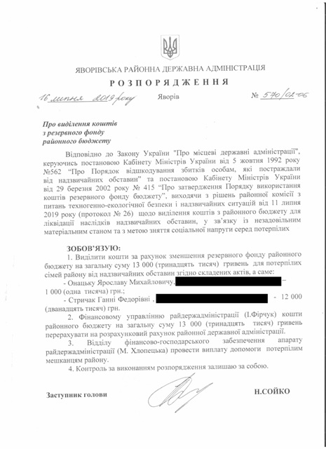 №570/02-06 2019-07-22 Про виділення коштів з резервного фонду районного бюджету