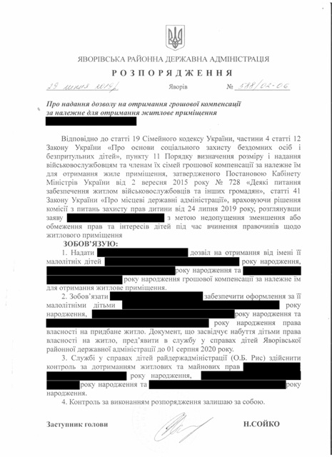 №588/02-06 2019-08-02 Про надання дозволу на отримання грошової компенсації за належне для отримання житлове приміщення