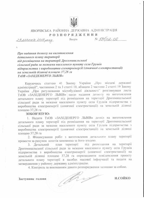 №591/02-06 2019-08-02 Про надання дозволу на виготовлення детального плану території під розміщення на території Дрогомишльської сільської ради за межами населеного пункту села Грушів підприємства з виробництва електричної/сонячної електроенергії на земельній ділянці прощею 37,25 га ТзОВ "ЗАХІДЕНЕРГО ЛЬВІВ"