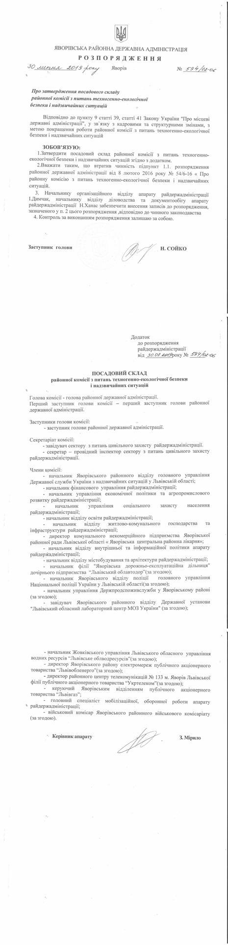 №594/02-06 2019-08-05 Про затвердження посадового складу районної комісії з питань техногенно-екологічної безпеки і надзвичайних ситуацій