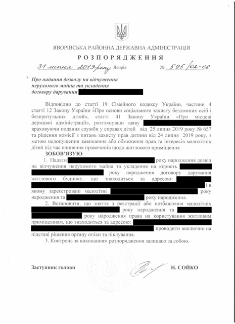 №595/02-06 2019-08-06 Про надання дозволу на відчуження нерухомого майна та укладення договору дарування